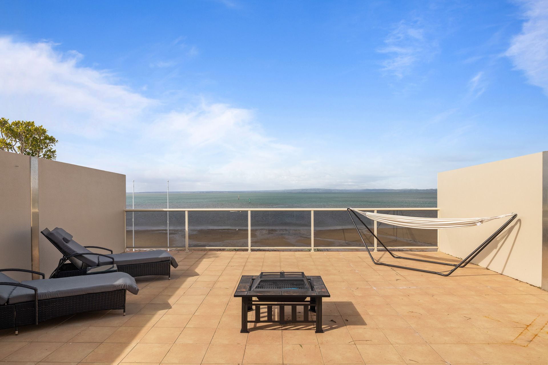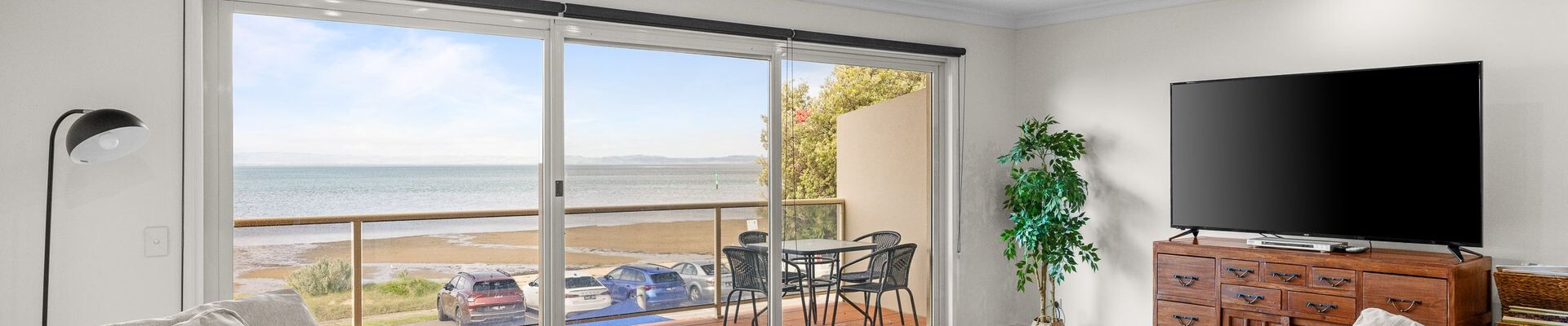 Downstairs the ocean-facing covered Balcony (with gas BBQ & seating for 4) has spectacular water views over Westernport Bay and the Churchill Island Marine National Park. Upstairs, the ocean-facing open Terrace (with 2 x sun lounges and 2-person hammock) has spectacular uninterrupted water views over Westernport Bay and the Churchill Island Marine National Park. The rear Terrace (with Sauna) provides another space to relax and soak in the incredible location, wrapping around to the front Balcony. There is one car space available for guests and there is free council parking for 50+ vehicles (cars and/or boats) is available on the waterfront, starting from just in front of the apartment.