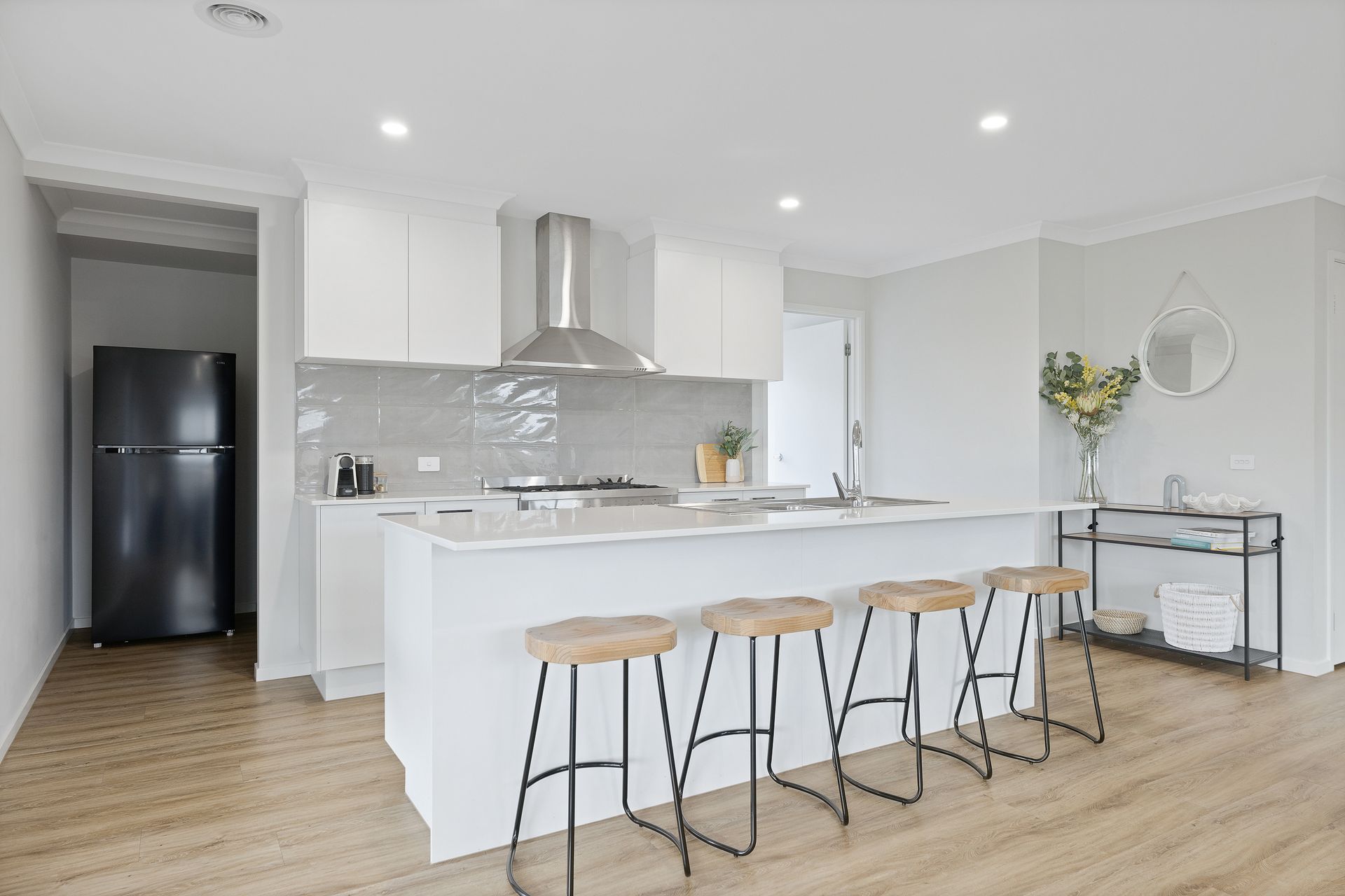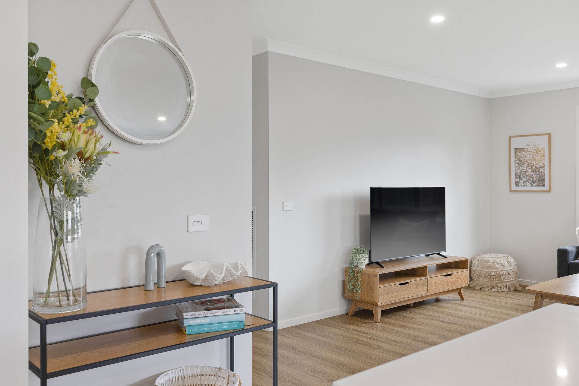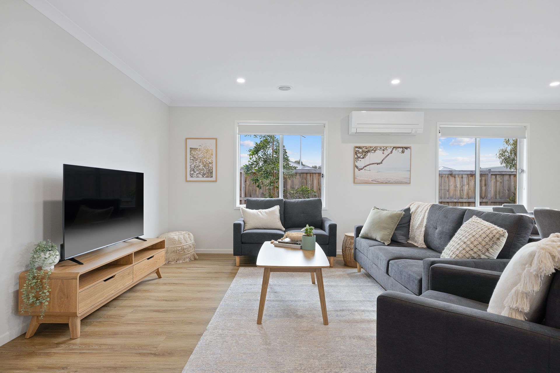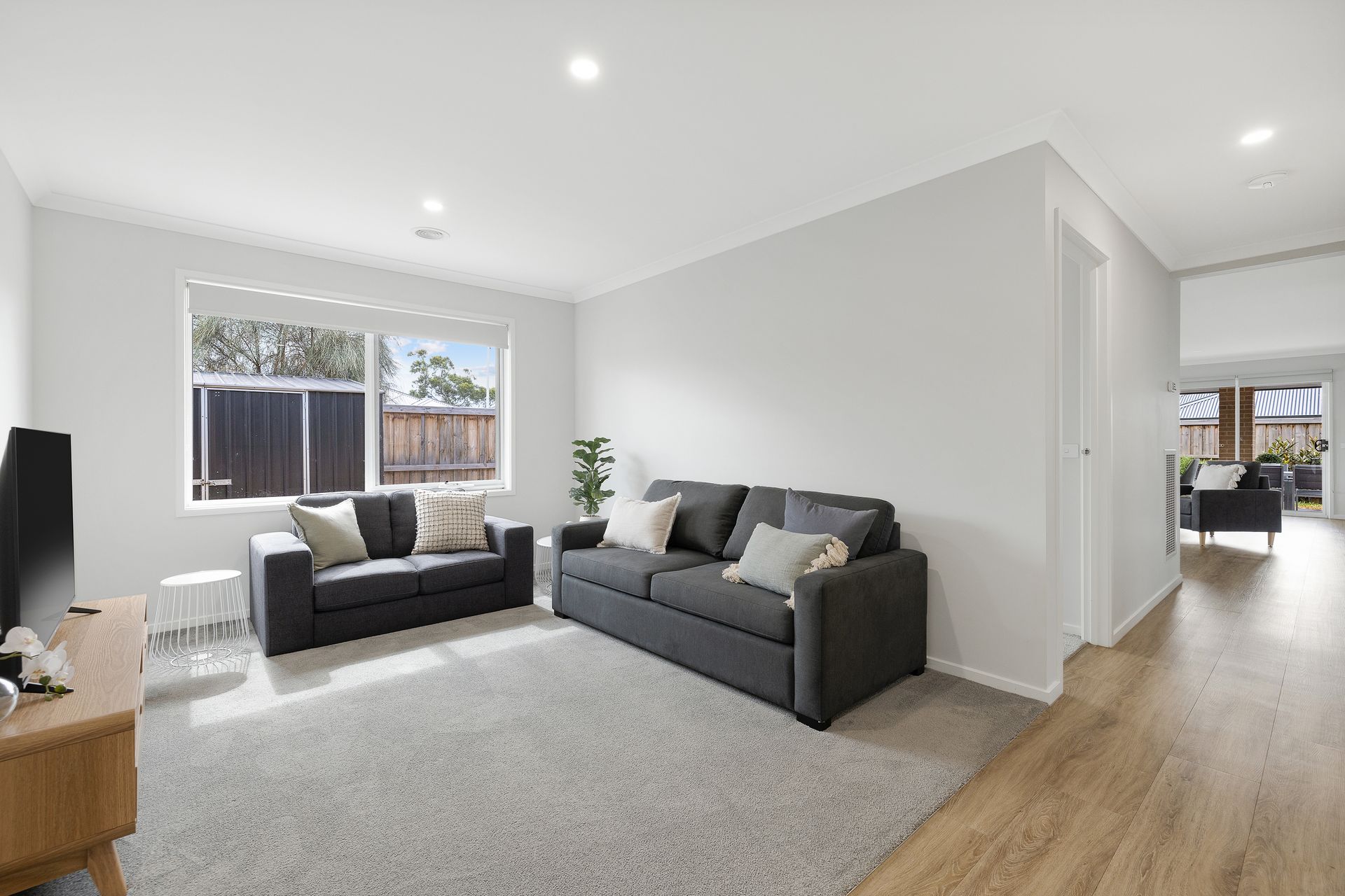 The front of the home opens into a central hallway that provides access to Bedroom 1, featuring a smart TV, WIR and ensuite (with shower & separate toilet). There is also internal access to the double Garage. The 2nd Living room (with smart TV) provides flexibility, and lead to Bedrooms 2, 3 and 4 (each with BIR), a Bathroom (with shower & bath) and a separate Toilet. The large open plan Kitchen/Dining/Living Room (with smart TV) flows through to the rear Alfresco and the Laundry (with washing machine) which also has access to the rear yard.