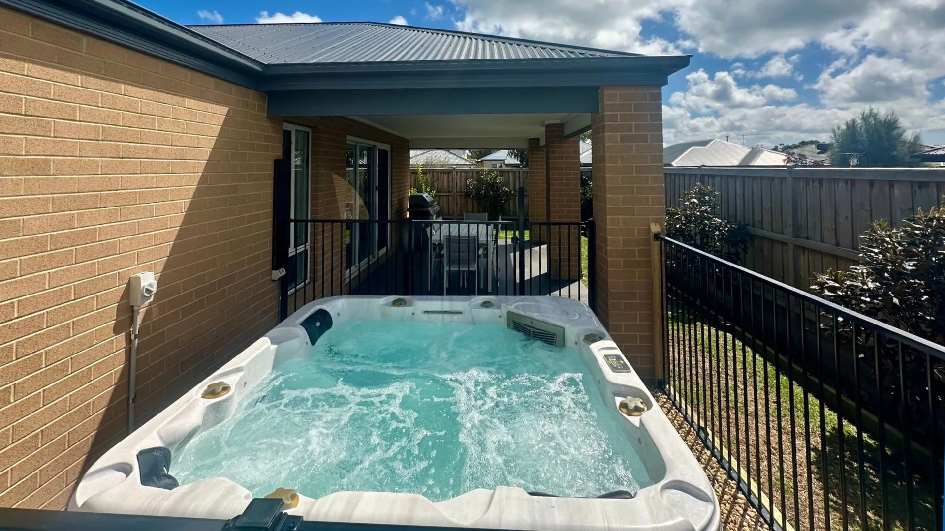 The fully covered rear entertaining Alfresco (with gas BBQ and 8-10 seater table) overlooks the fully enclosed rear yard which is perfect for children and includes a fully enclosed heated 6-seater spa. There is parking for 2 cars in the Double Garage (with pool table, table tennis table, bar table & stools, internal access to the home and also the rear yard) plus space for another vehicle (car &/or a boat) in the driveway. There is a shed (3x2m) in the back yard what is also available for guests to use. The fantastic Seagrove Park is just 100m away with a huge playground and space for ball games.