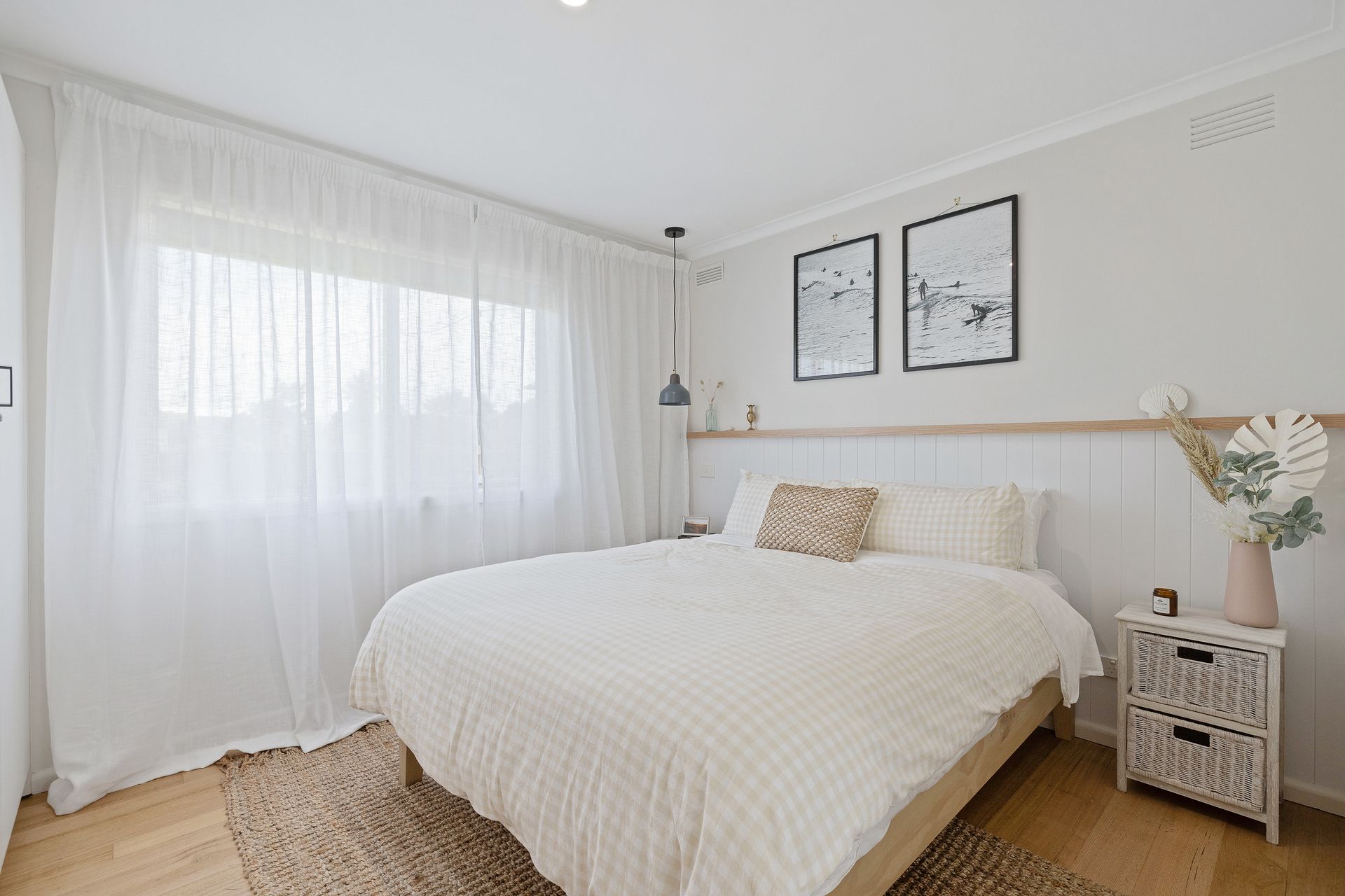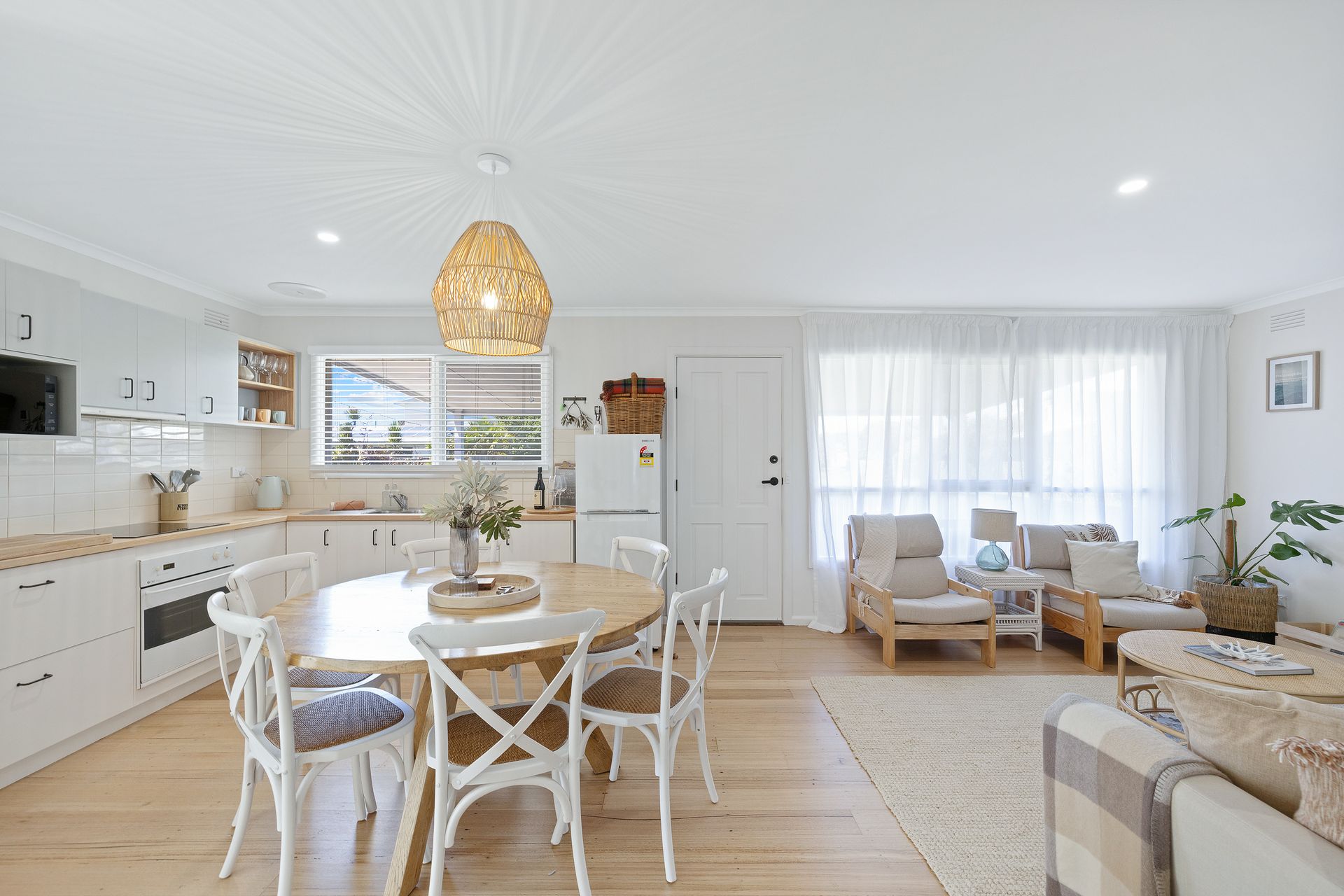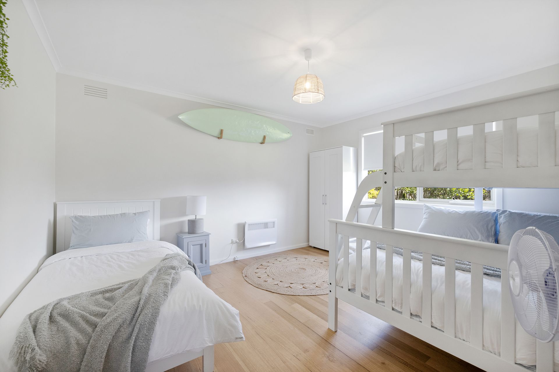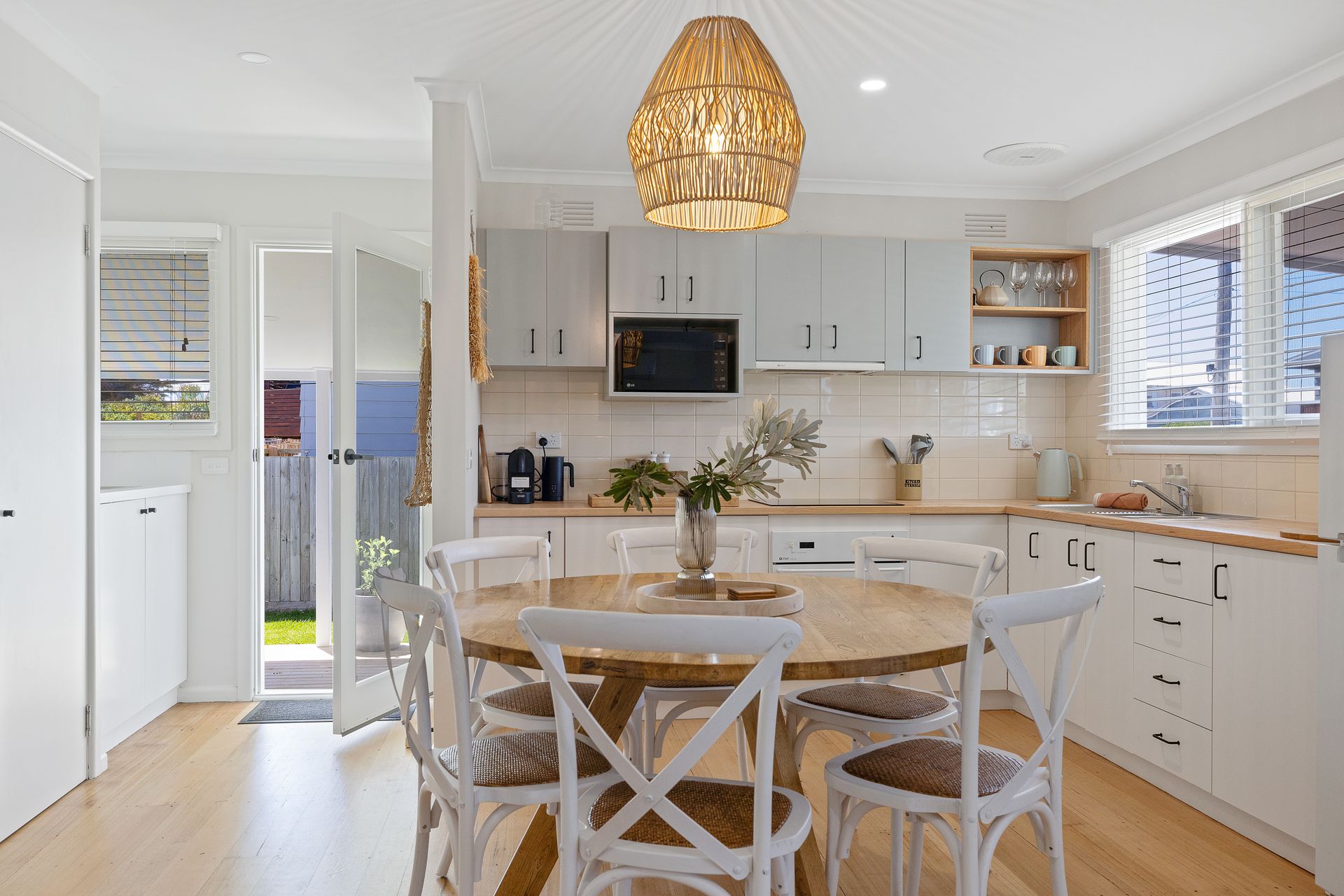 The fully covered front Deck (with Table & chairs for 8 and a gas BBQ) has views down to Sunderland Bay Beach, just metres away. The fully enclosed rear yard is perfect for children and pets alike (small/medium dogs only and not on furniture) and features a firepit (some wood provided to get you started) and a hot/cold outdoor shower. The long driveway and carport provide parking for up to 3 vehicles (cars and/or a boat).