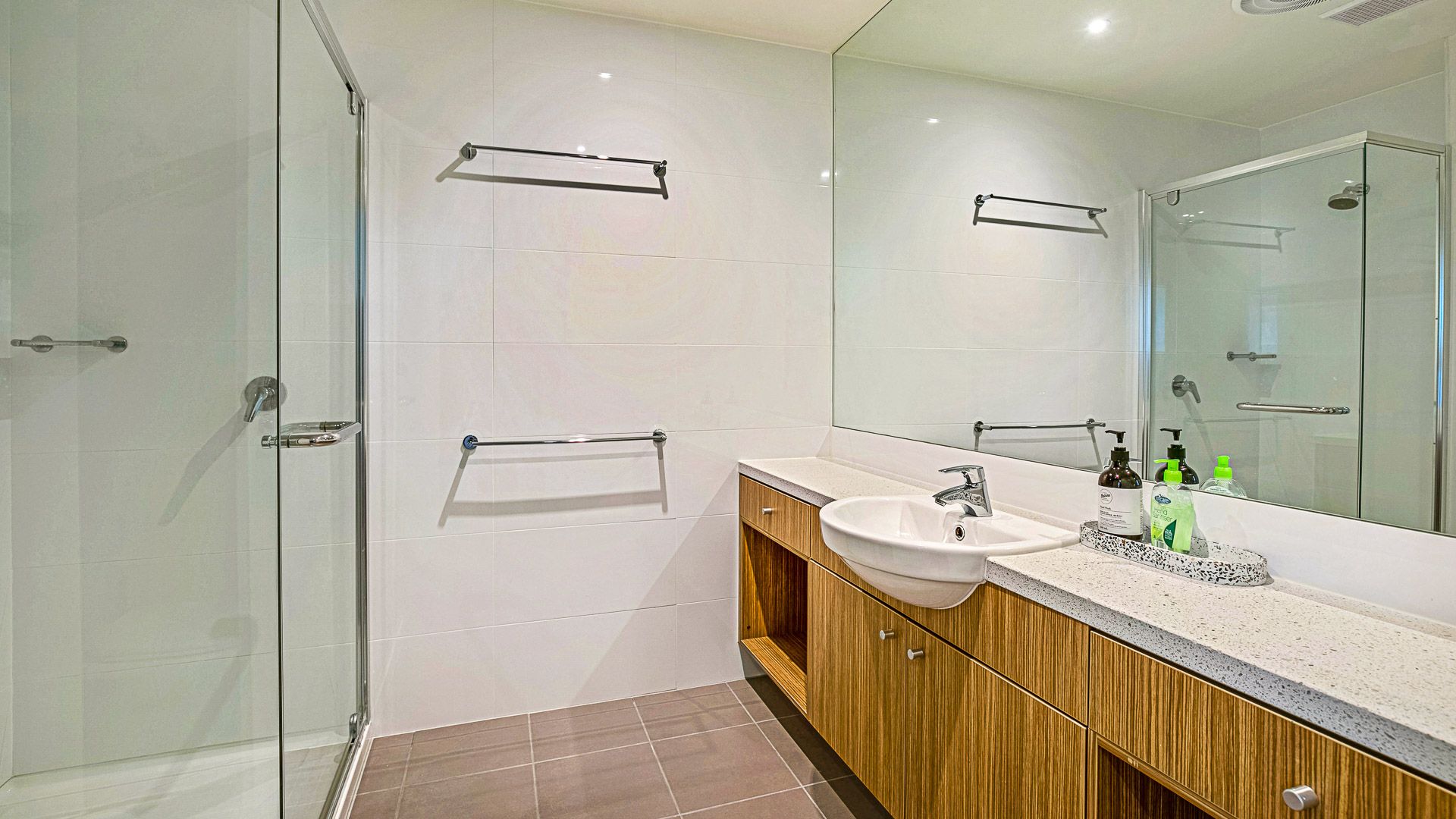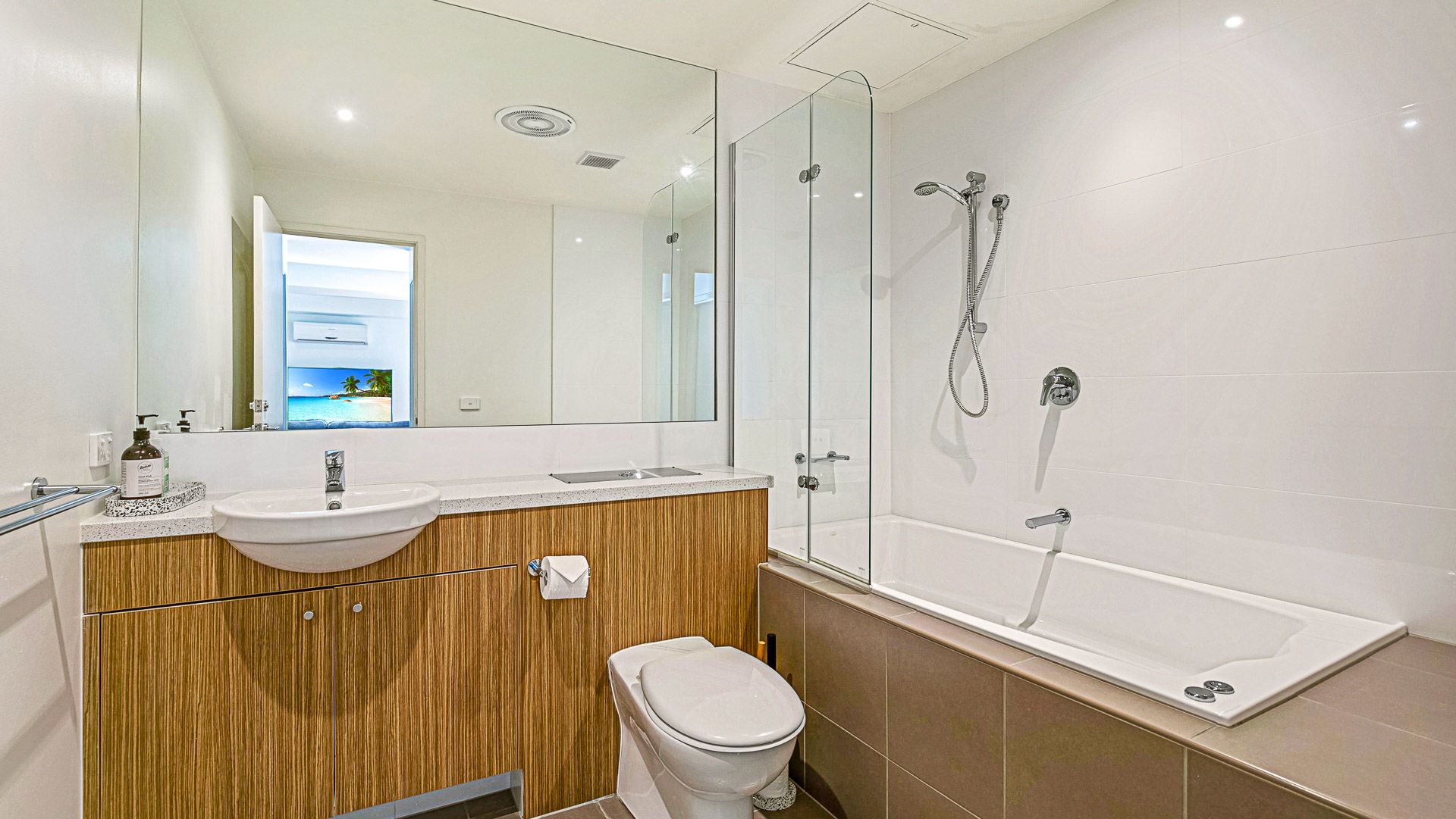 The large living space incorporates a living room (with one of the 3 smart TV's, the 2 others in 2 of the 3 bedrooms), dining room (access to main balcony) and open plan kitchen. Bedroom 1 has direct access to one of the large balconies and shares access to the main bathroom (with spa bath) with bedroom 2. Bedroom 3 has an ensuite bathroom and walk through robe.