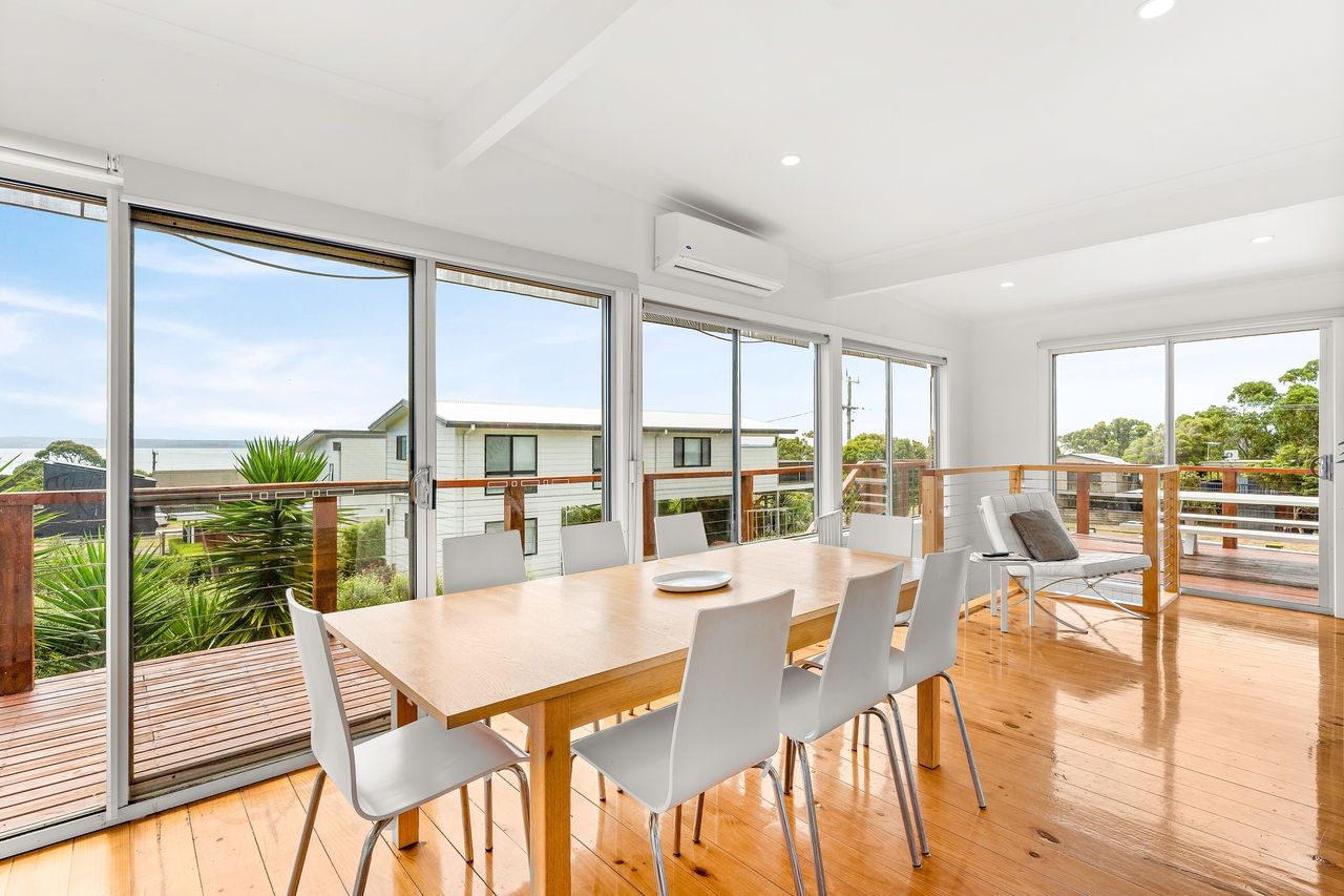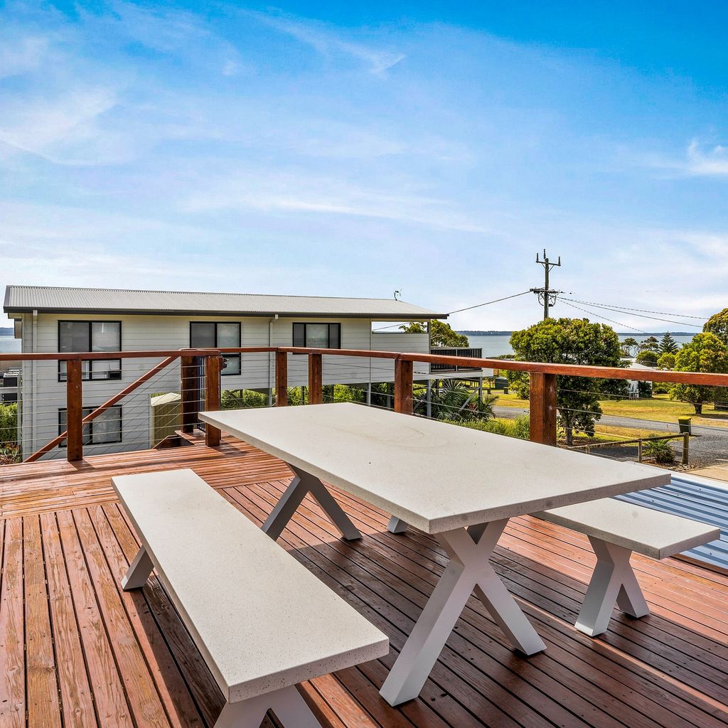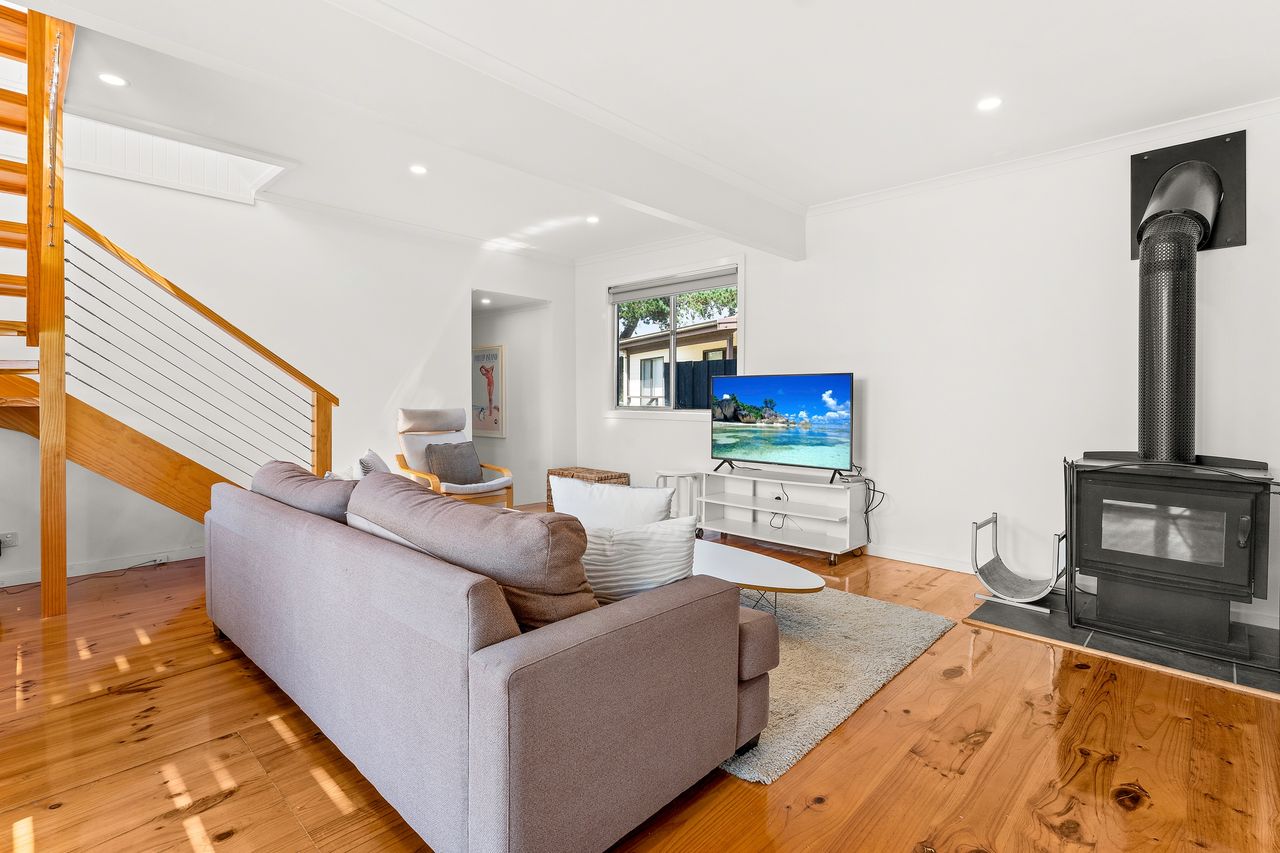 The main entry to the home is via the downstairs large 2nd central Living Room (with smart TV & coonara wood heater), Bedroom 1, Bedroom 3 (with built in robes) and Bedroom 4. There is also a Laundry/Bathroom (with shower, toilet & washing machine) with direct access out to the rear yard. Upstairs is the large open plan Kitchen/Living/Dining room (with smart TV & JBL Bluetooth sound system) which has stunning views of the water. This level also has Bedroom 2 (with built in robes) and another bathroom (with bath & toilet).