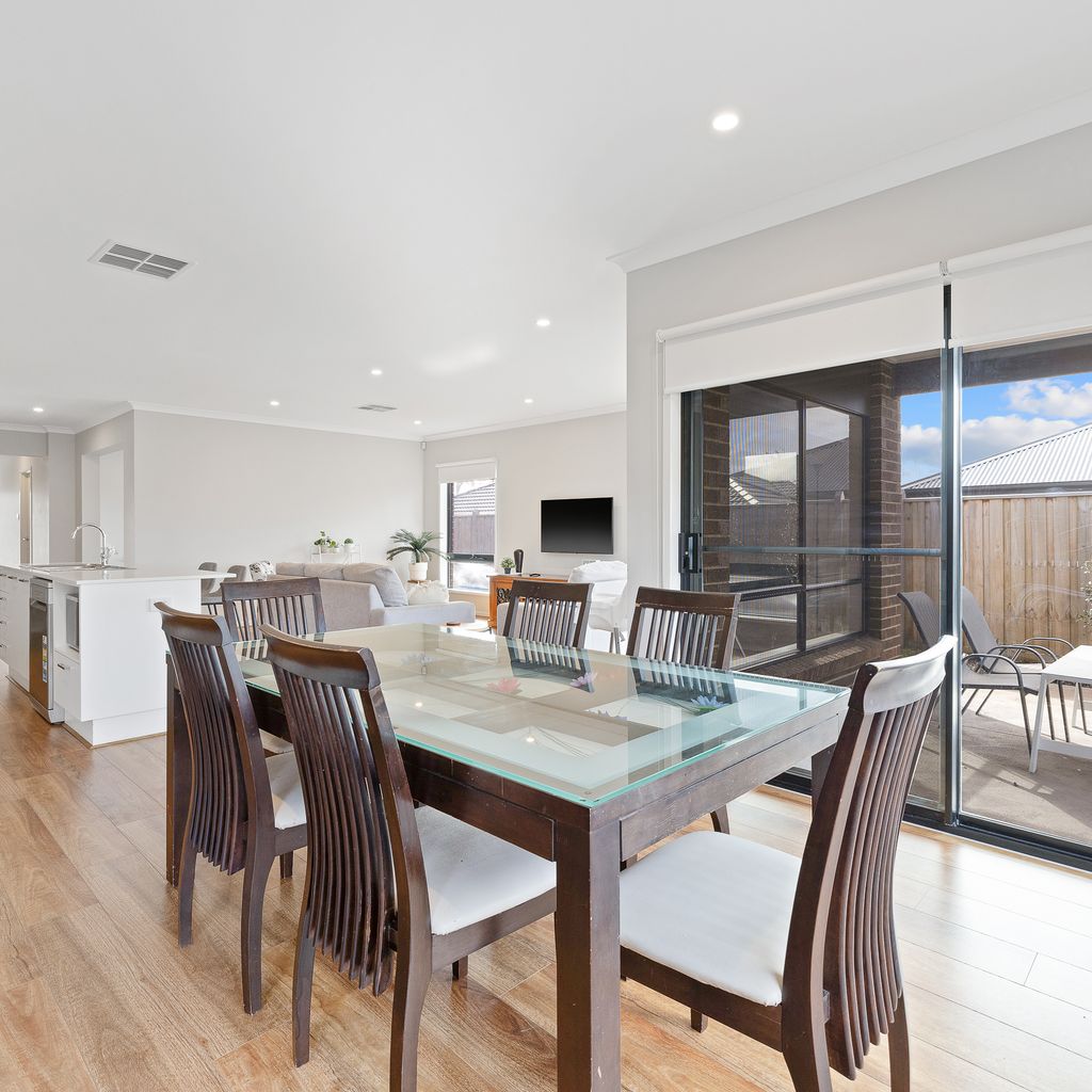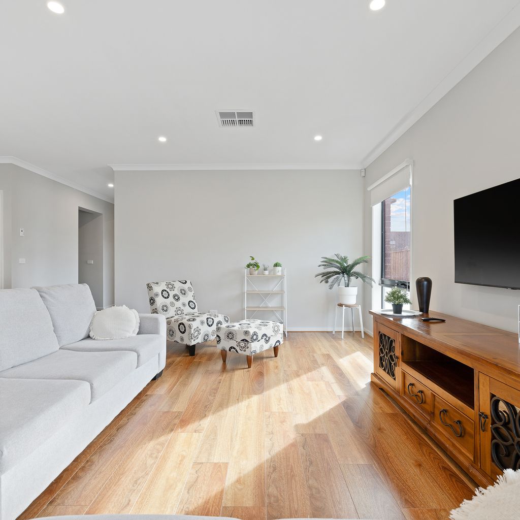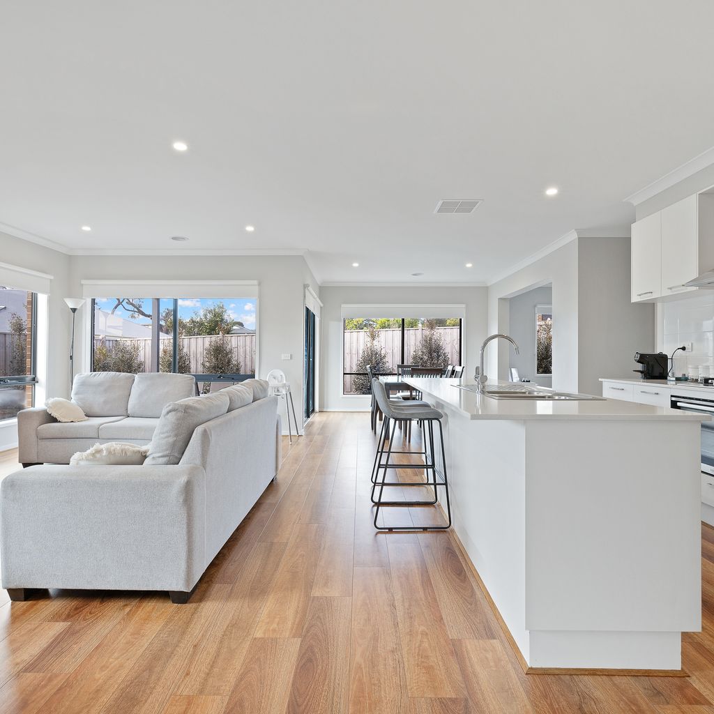This single-storey home features a main bedroom at the front of the home with a WIR and en-suite (with shower & toilet). There is a front living room which provides a lovely separate area to spread out. The other three bedrooms each have BIR, and share access to the main bathroom (with bath & shower), a separate toilet and a laundry. The central kitchen overlooks the Family Room, Dining room (with smart 40" TV) and Games room (with smart 40" TV). The Dining Room also provides access out to the covered Alfresco at the rear of the home.