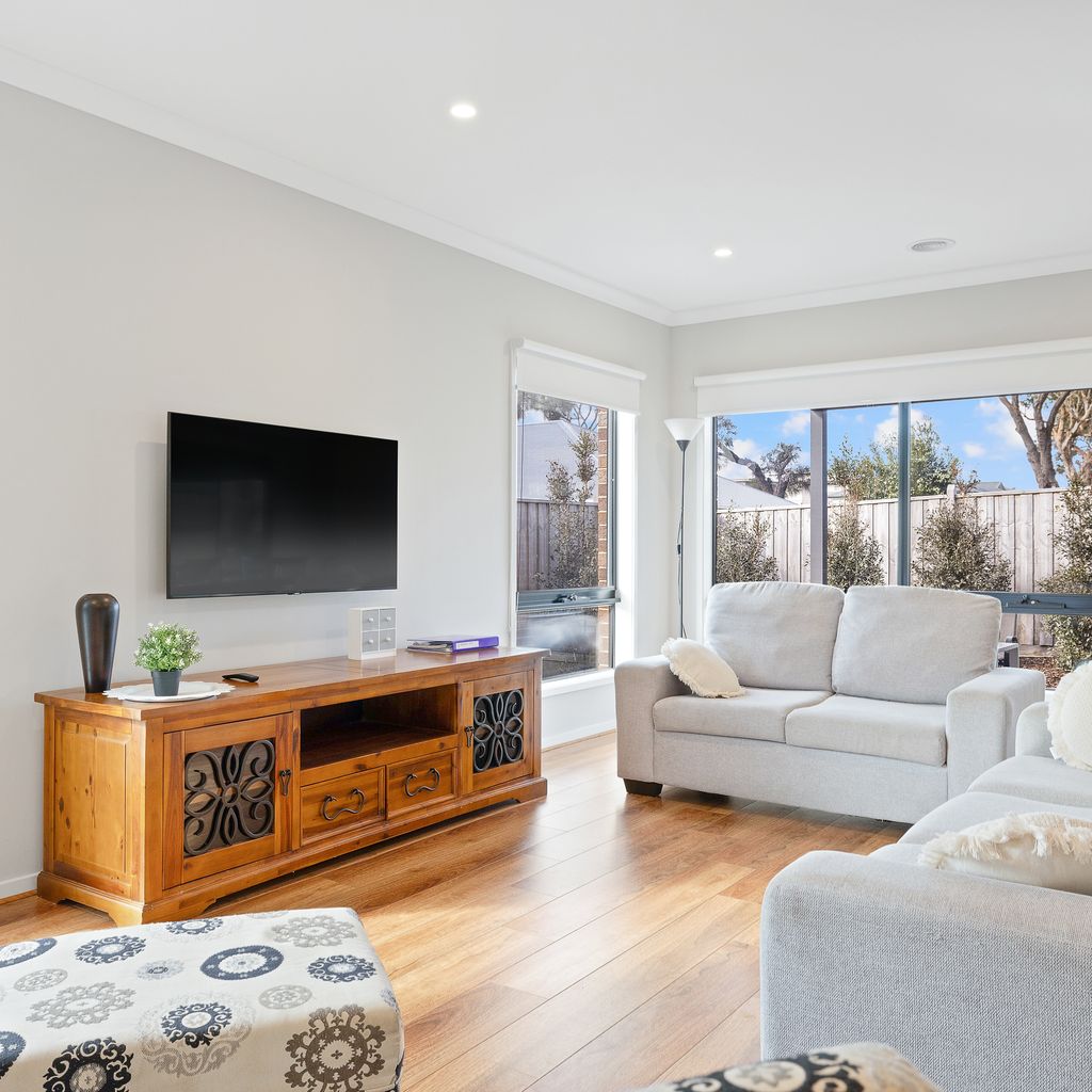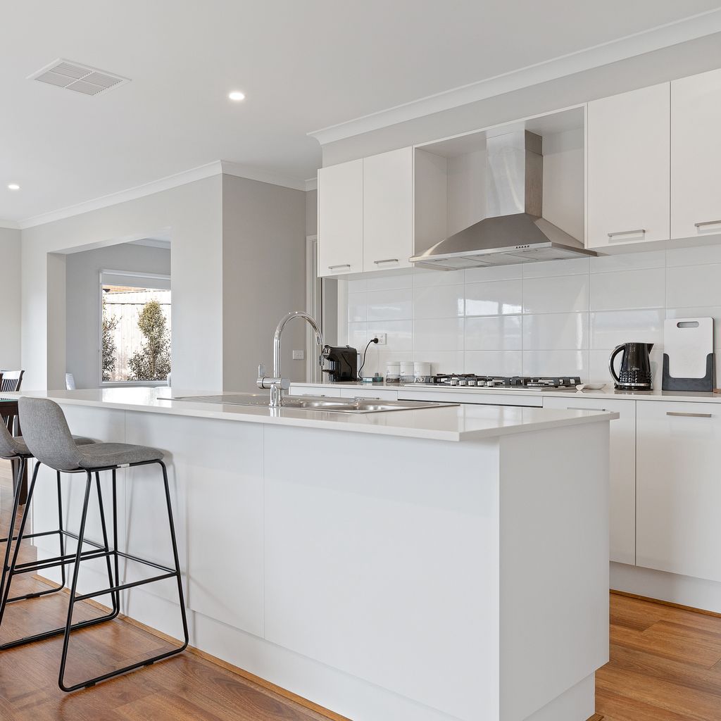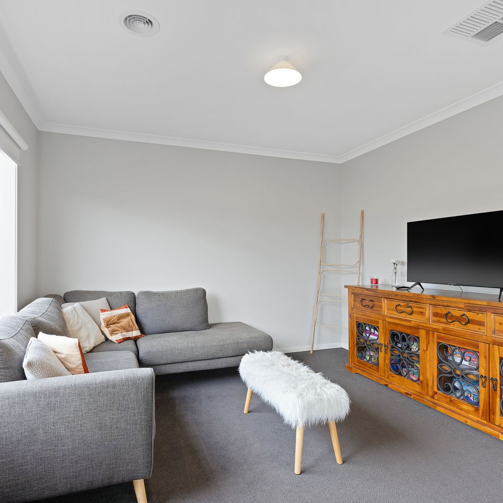 This single-storey home features a main bedroom at the front of the home with a WIR and en-suite (with shower & toilet). There is a front living room which provides a lovely separate area to spread out. The other three bedrooms each have BIR, and share access to the main bathroom (with bath & shower), a separate toilet and a laundry. The central kitchen overlooks the Family Room, Dining room (with smart 40" TV) and Games room (with smart 40" TV). The Dining Room also provides access out to the covered Alfresco at the rear of the home.