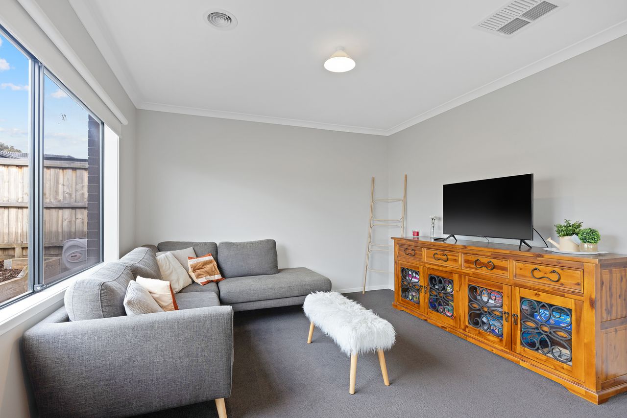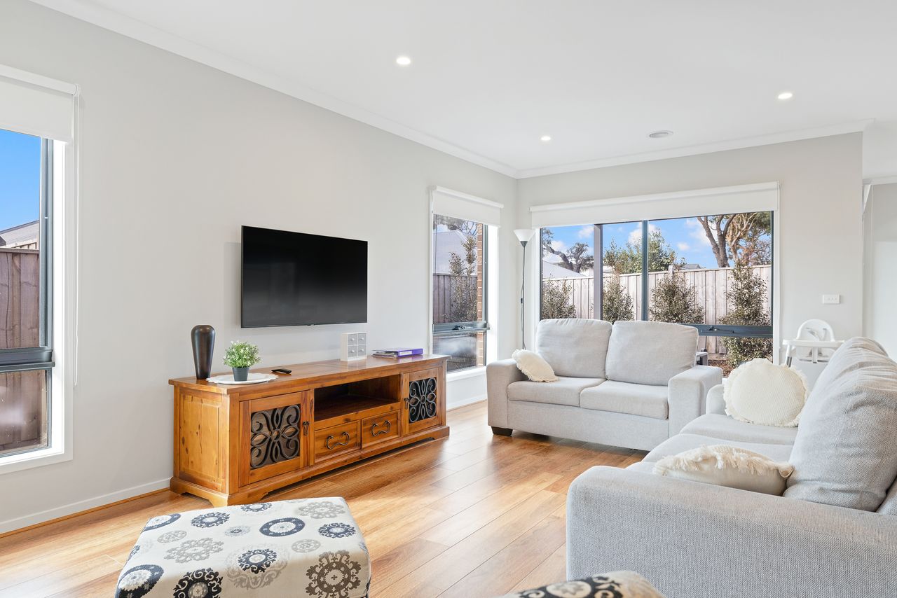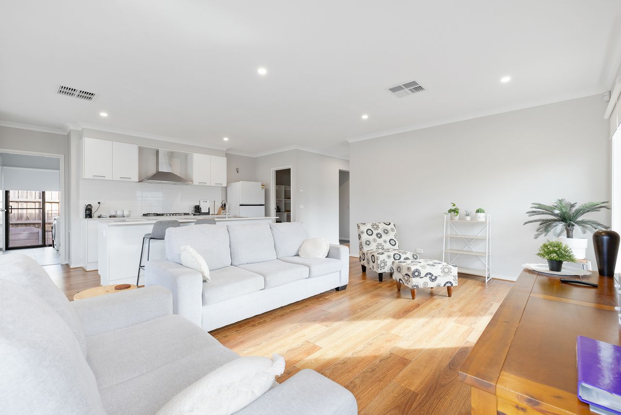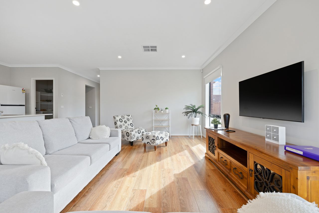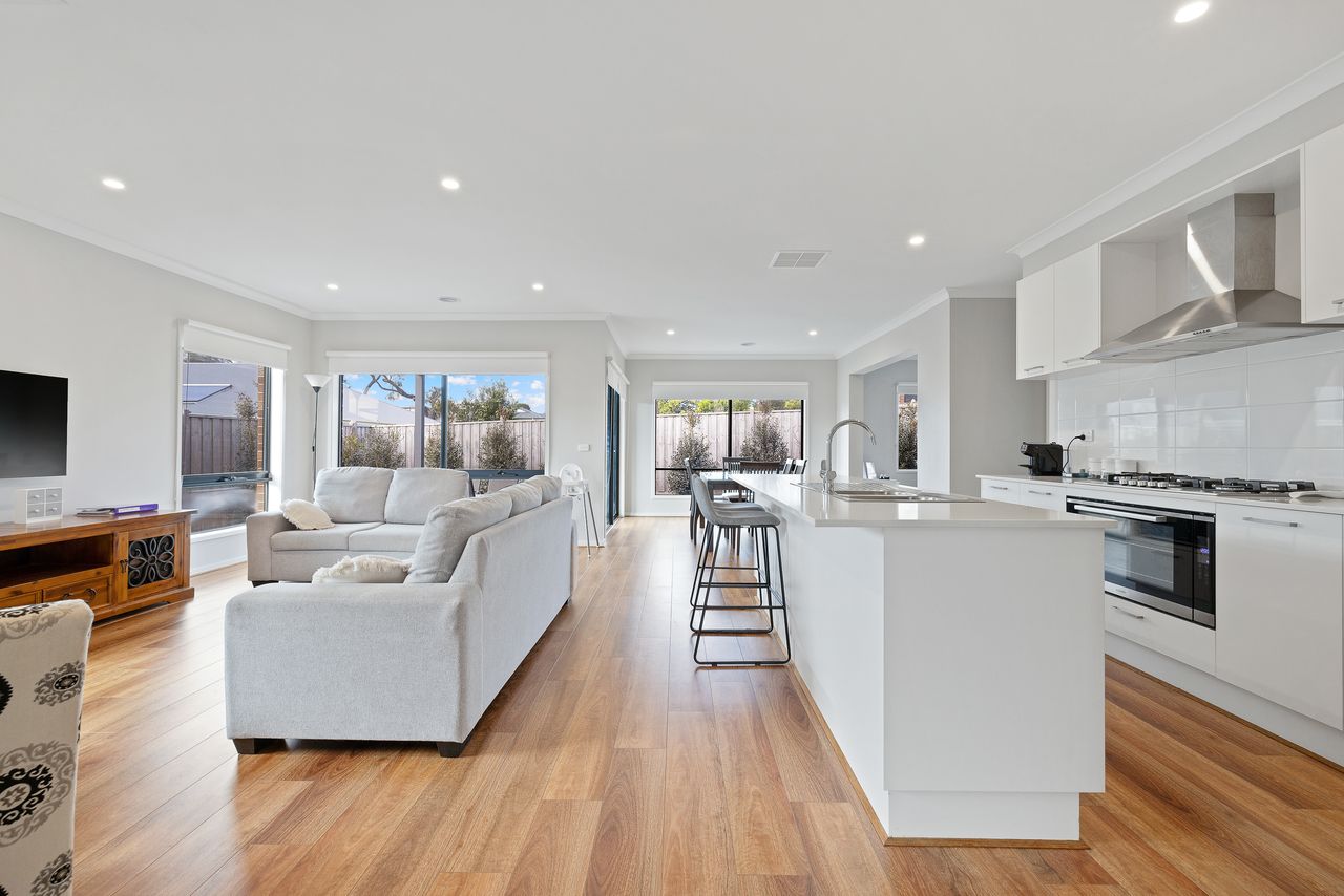This single-storey home features a main bedroom at the front of the home with a WIR and en-suite (with shower & toilet). There is a front living room which provides a lovely separate area to spread out. The other three bedrooms each have BIR, and share access to the main bathroom (with bath & shower), a separate toilet and a laundry. The central kitchen overlooks the Family Room, Dining room (with smart 40" TV) and Games room (with smart 40" TV). The Dining Room also provides access out to the covered Alfresco at the rear of the home.
