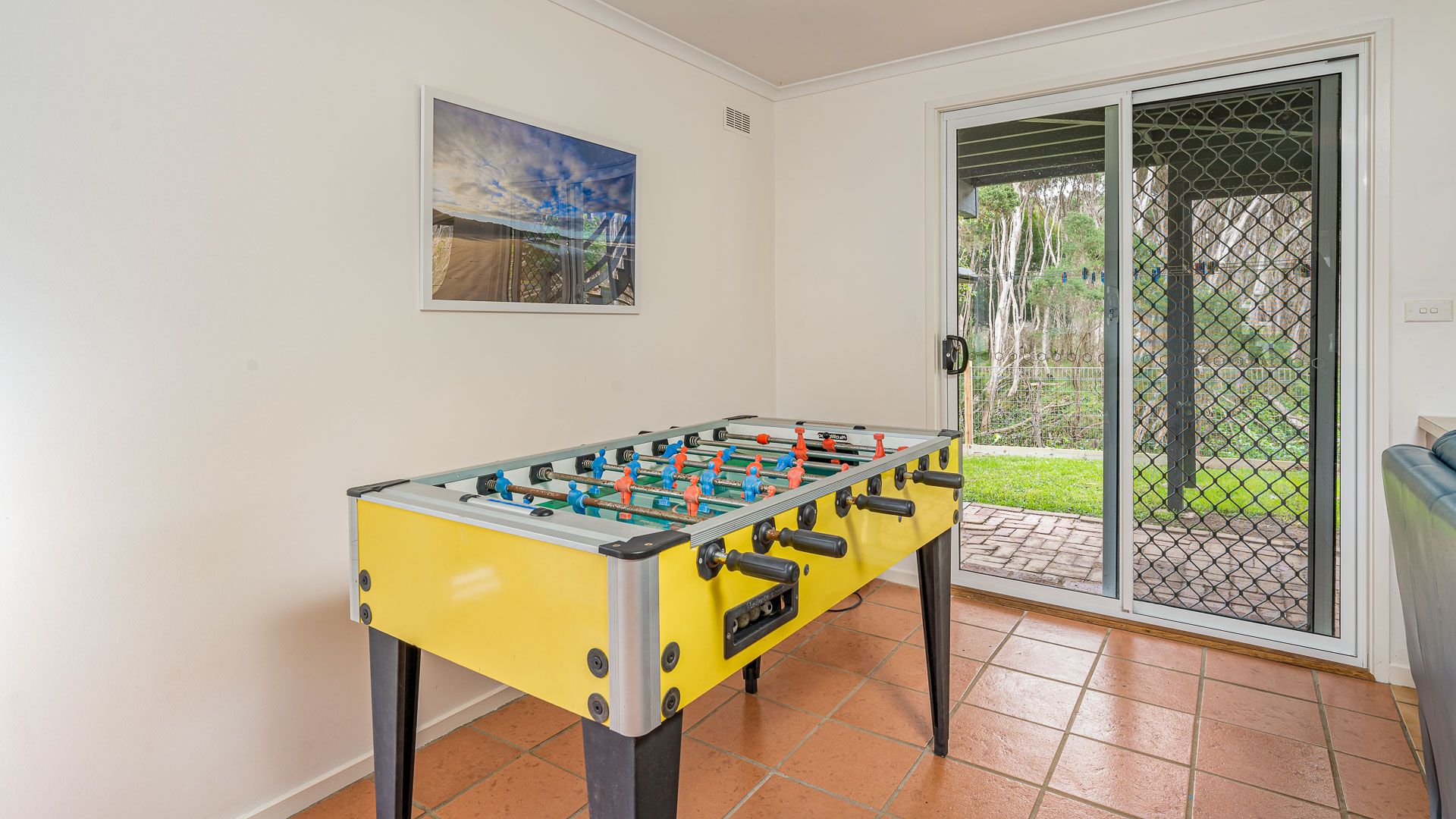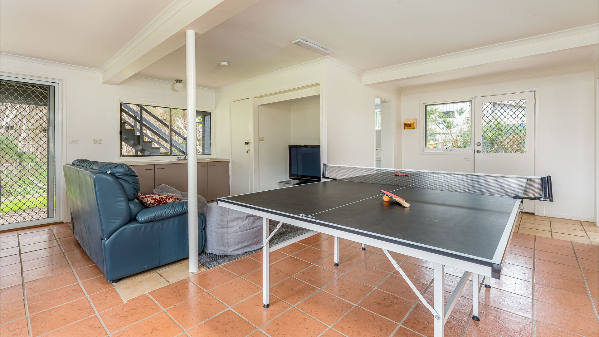 Downstairs you'll find bedroom 3 and bedroom 4 (with BIR), a laundry/bathroom (with shower and toilet) plus the second living area featuring a table tennis table, foosball table plus TV, chromecast, Playstation 4 & DVD player. Access between the two floors is via one of the two external staircases. Upstairs is the huge open plan kitchen/dining/main living room (TV with chromecast & Optus Sport), another bathroom (with bath, shower and toilet) plus bedrooms 1 and 2 (both with BIR).