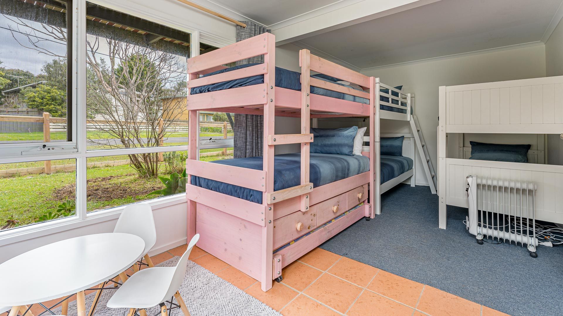 Bedroom 4 (Downstairs): Three sets of Single bunks and one Single trundle bed