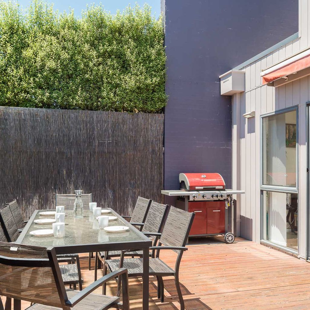 Downstairs is a large open plan Kitchen/Dining/Living room (with smart TV, access to Netflix and movies and CD/DVD player), leading onto a large outdoor area. There is also a fully equipped Laundry (with washing machine & clothes dryer).