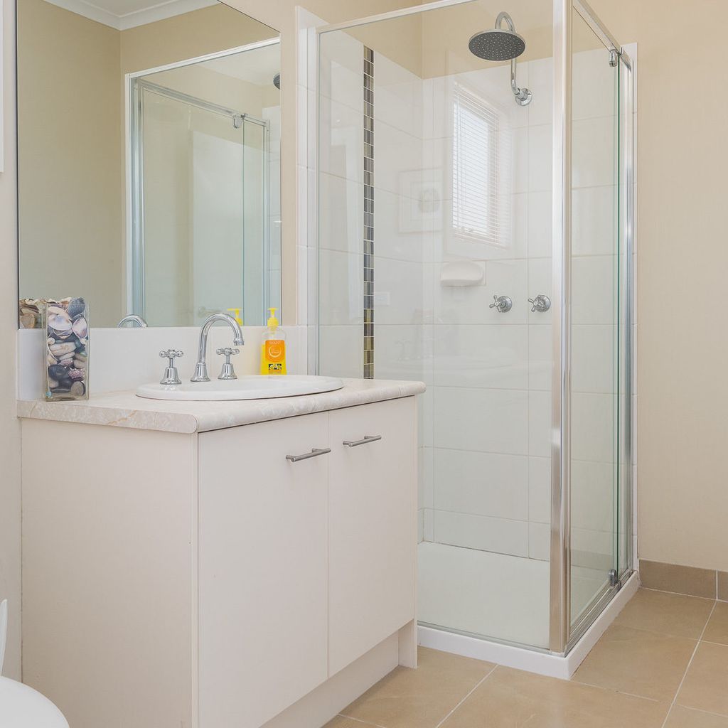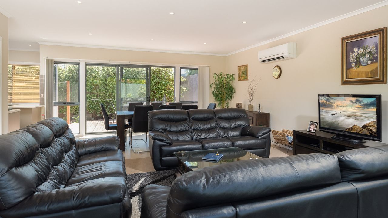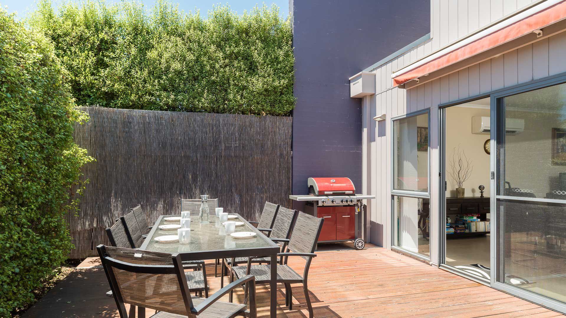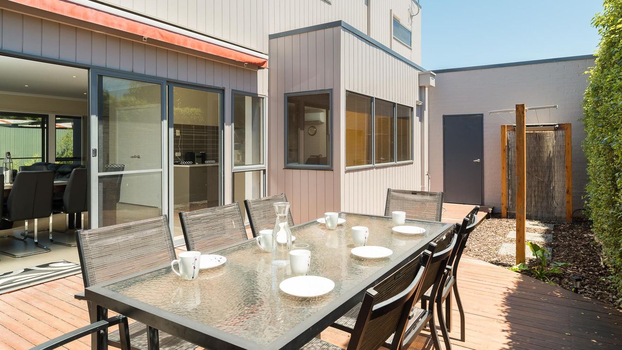 There is an enclosed outdoor area accessed from the Living room, featuring a gas BBQ and outdoor seating for 8. There’s a single lock up garage and space to park two extra cars.