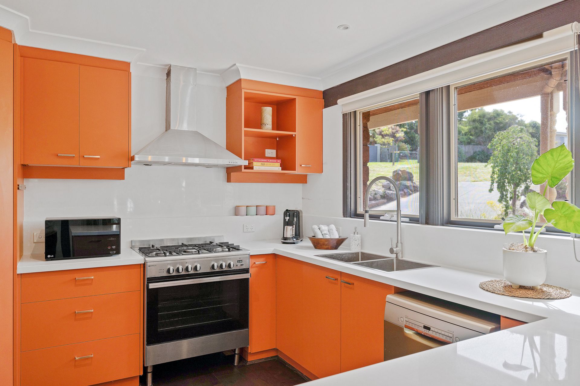 The fully appointed kitchen is equipped with cooking utensils, crockery, cutlery, microwave, Nespresso pod coffee machine, toaster, kettle, etc. plus a double sink, double door fridge, dishwasher, 900mm gas oven and 5-burner gas cook top.