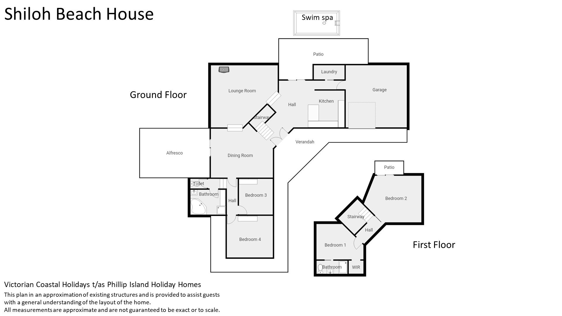 Plenty of activities for the young and not so young, and with a wood fire in the lounge, heated deck at the back and a large lit swim spa this accomodation will not disappoint regardless of the season or weather. Some of the many features of this lovely home are detailed below: