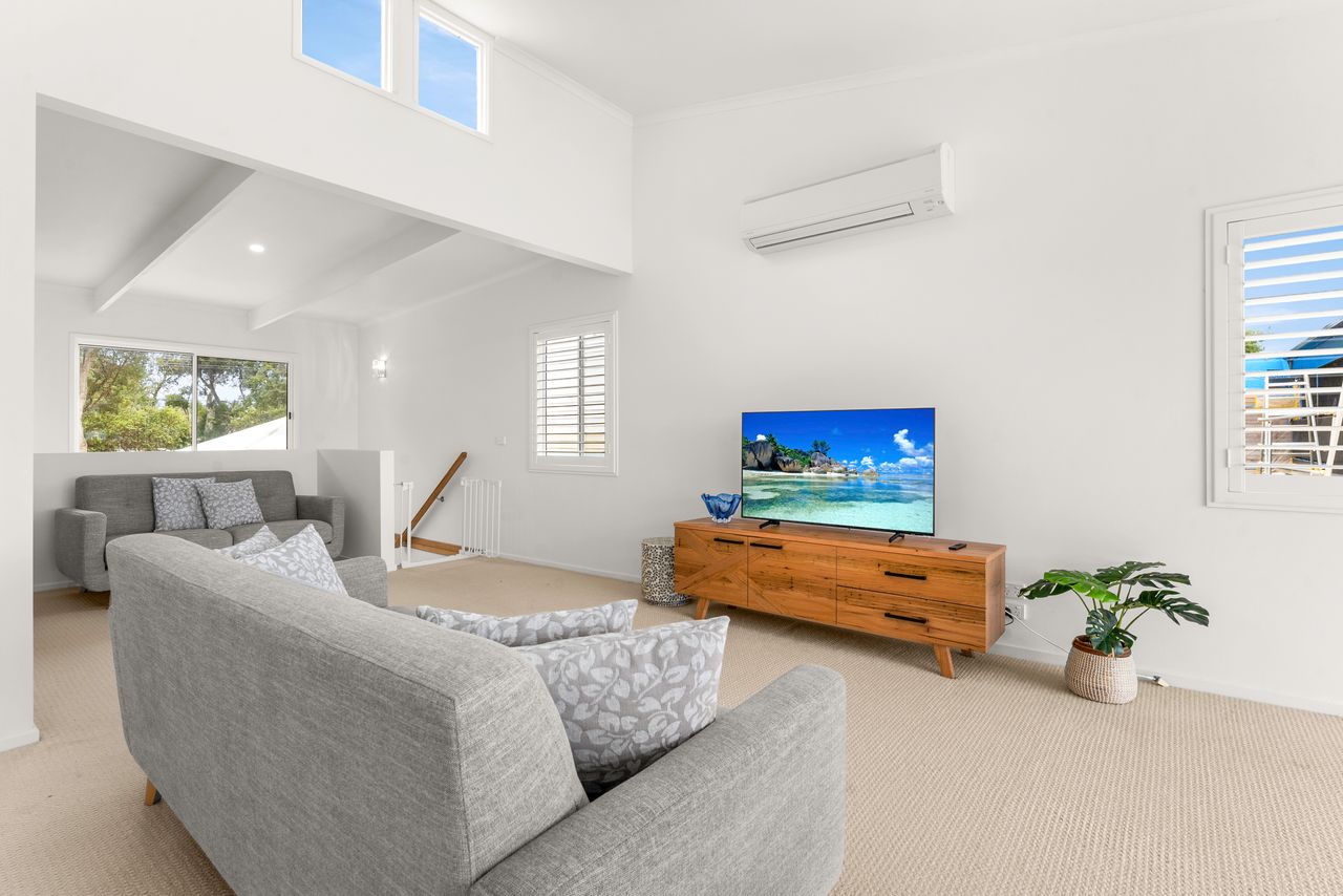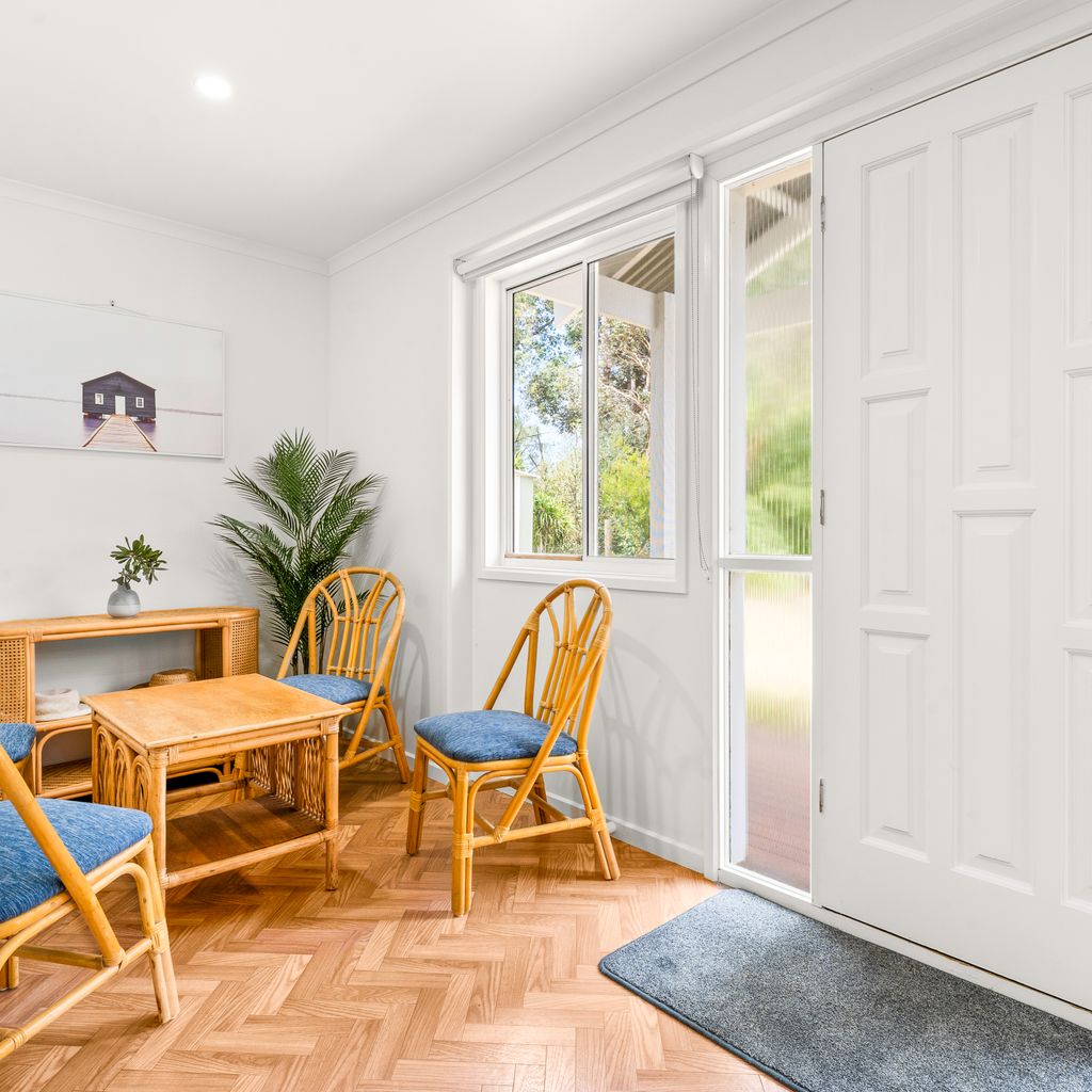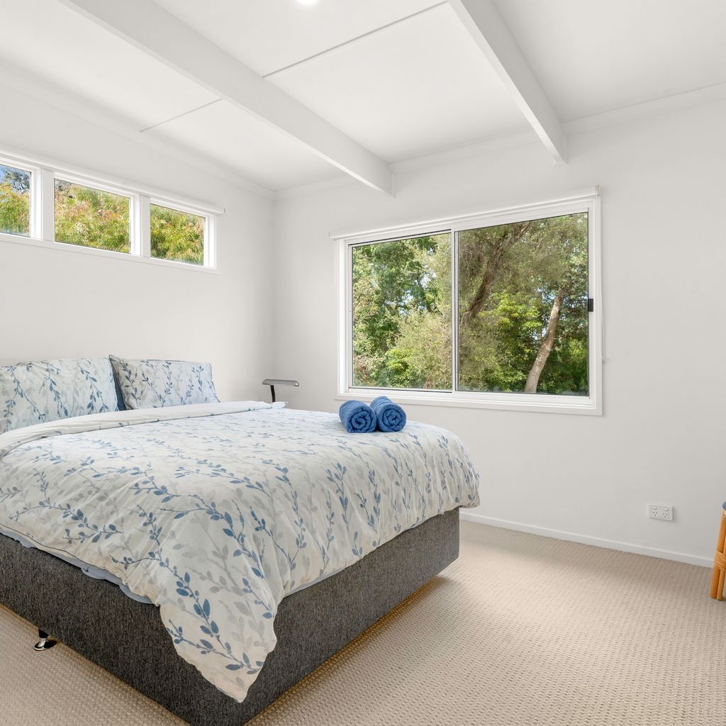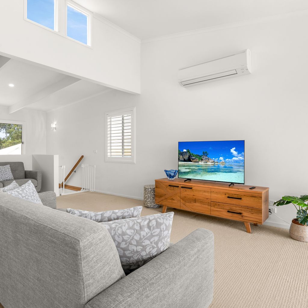 Downstairs is a teenage retreat (with piano & second fridge) that provides some additional space to spread out. Bedrooms 2 and 3 are all on this level, as well as the bathroom & laundry (with shower, washing machine & separate toilet). Upstairs is the large open plan Kitchen/Dining/Living room (with smart TV) which provides access out to the rear deck, Bedroom 1 (with BIR), a bathroom (with shower & a separated toilet). There is also a small reading retreat upstairs.