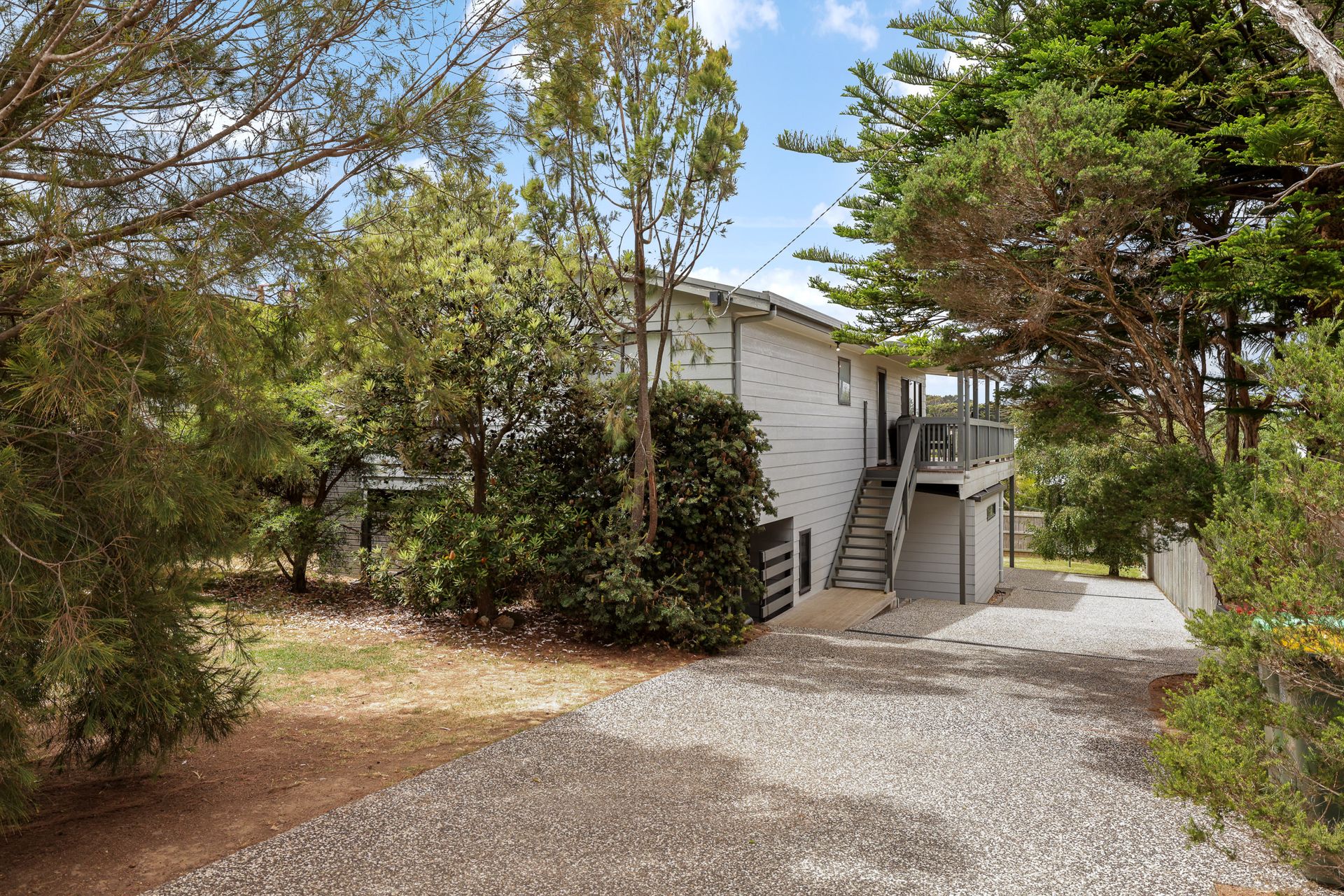 The entire block is enclosed and features a large yard with a covered area immediately outside the downstairs Living Room (with 2 outside chairs), which provides a grassy space for guests to unwind or for children to play, and also features a mounted basketball ring and a hot/cold outdoor shower. The home’s well-designed outdoor zones and elevated setting offer a sense of seclusion while still being just a short stroll from the stunning Smiths Beach shoreline and the local general store. There is space for 3 vehicles (cars and/or a boat) to park in the front yard/driveway, along with additional off-street parking available if needed.
