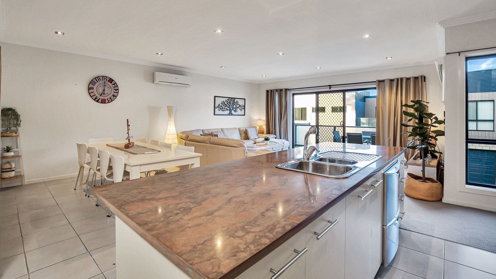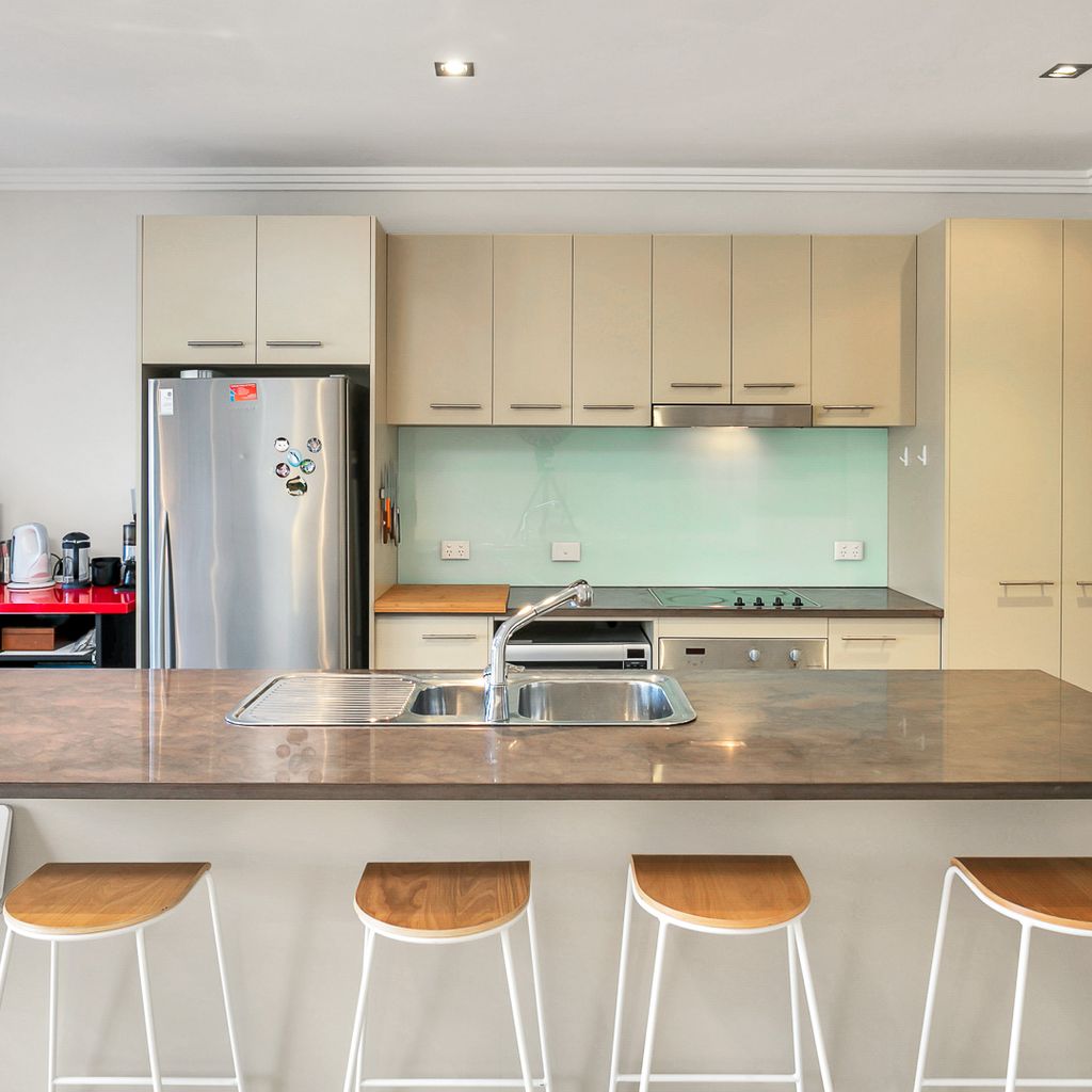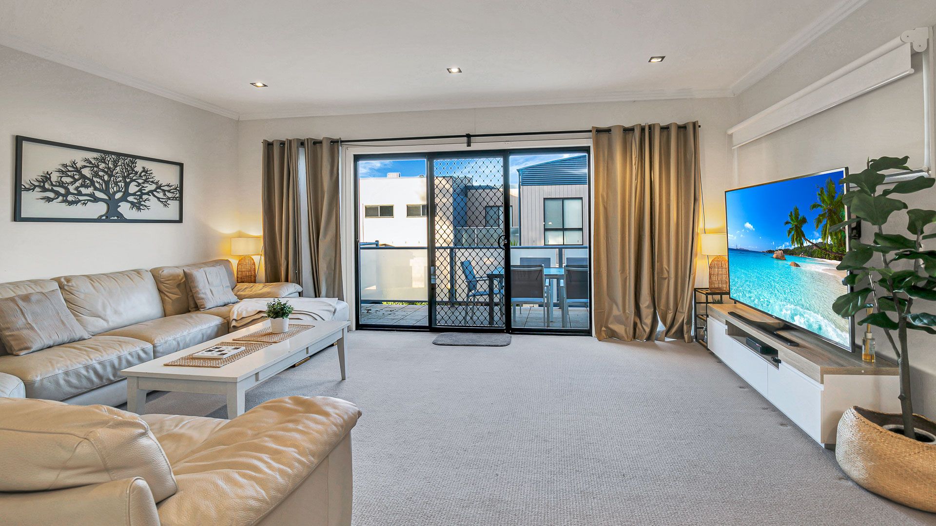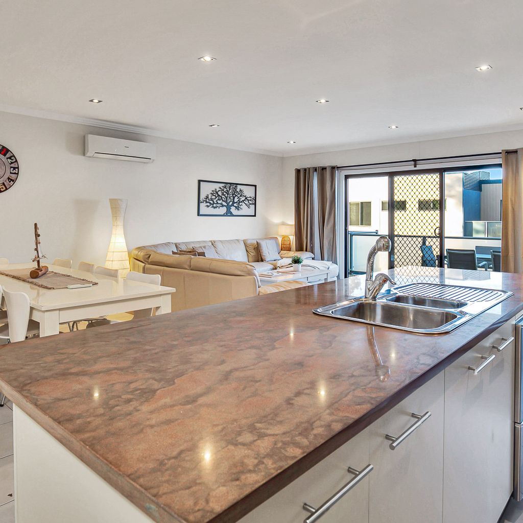 Upstairs is the large open plan kitchen, dining/living room (with a 75 inch smart TV) which provides access to the upstairs front balcony. Bedrooms 1 and 2 are also upstairs, each with a BIR and another bathroom (with shower and toilet).