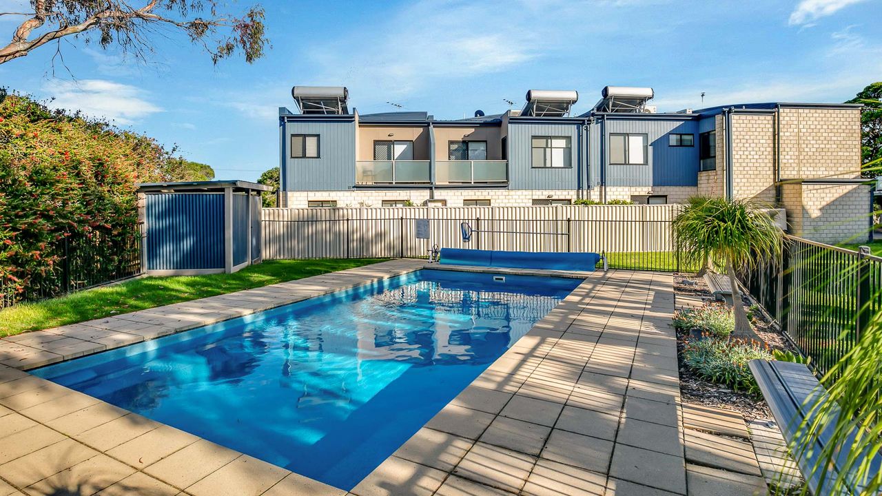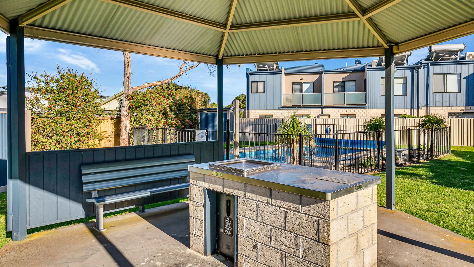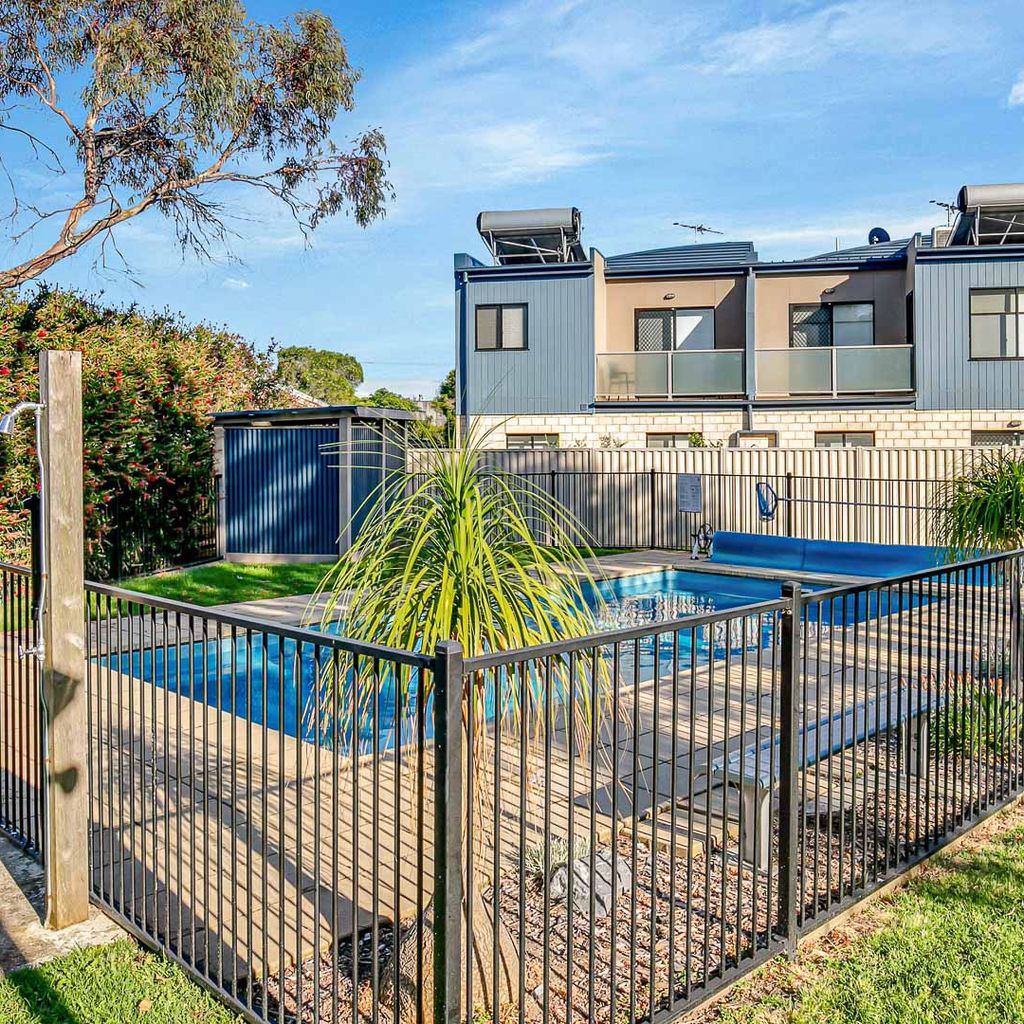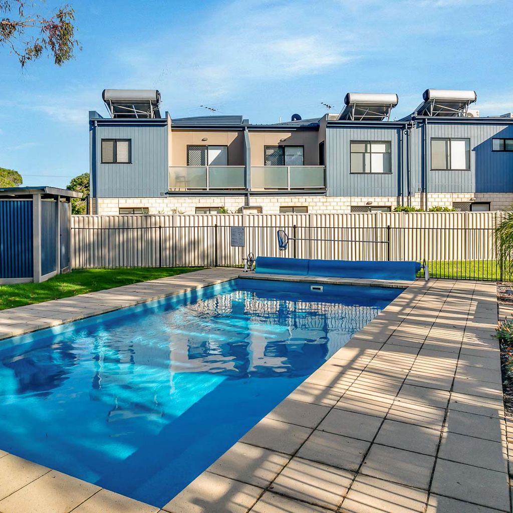 There are outdoor tables and chairs on the upstairs balcony as well as in the downstairs enclosed yard. The double Garage (with internal access into the home and foldup table tennis table) provides space for 2 cars. The shared facilities available include a solar-heated in-ground pool and shady BBQ area, plus some additional communal parking spots available on a first-come, first-served basis.