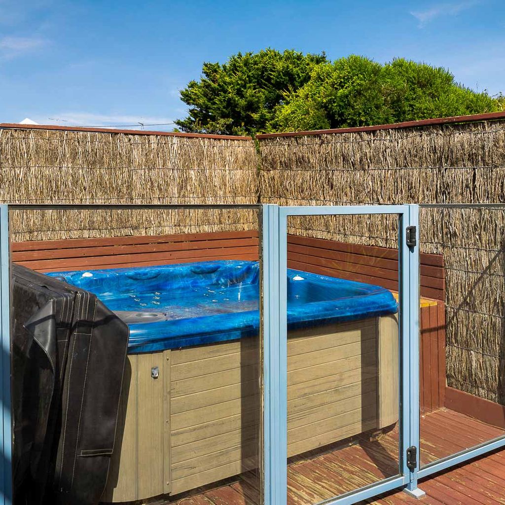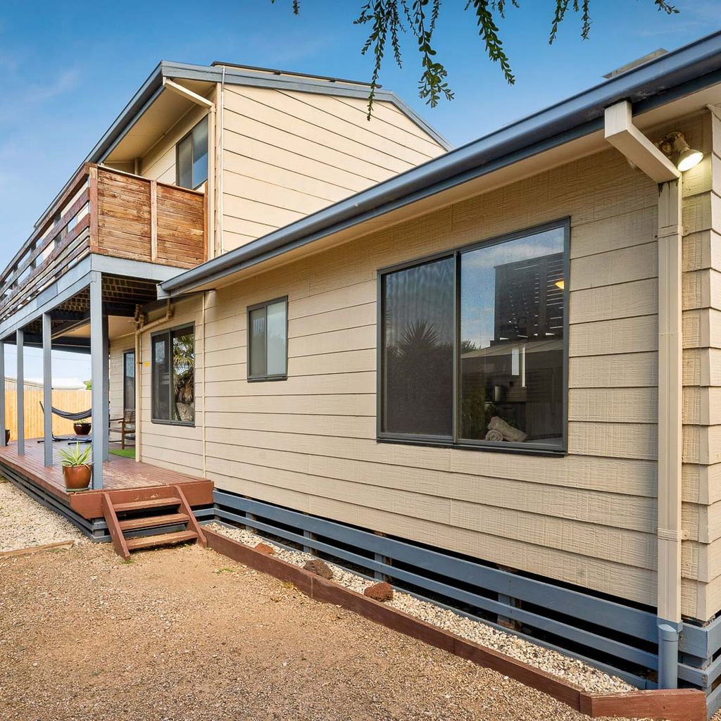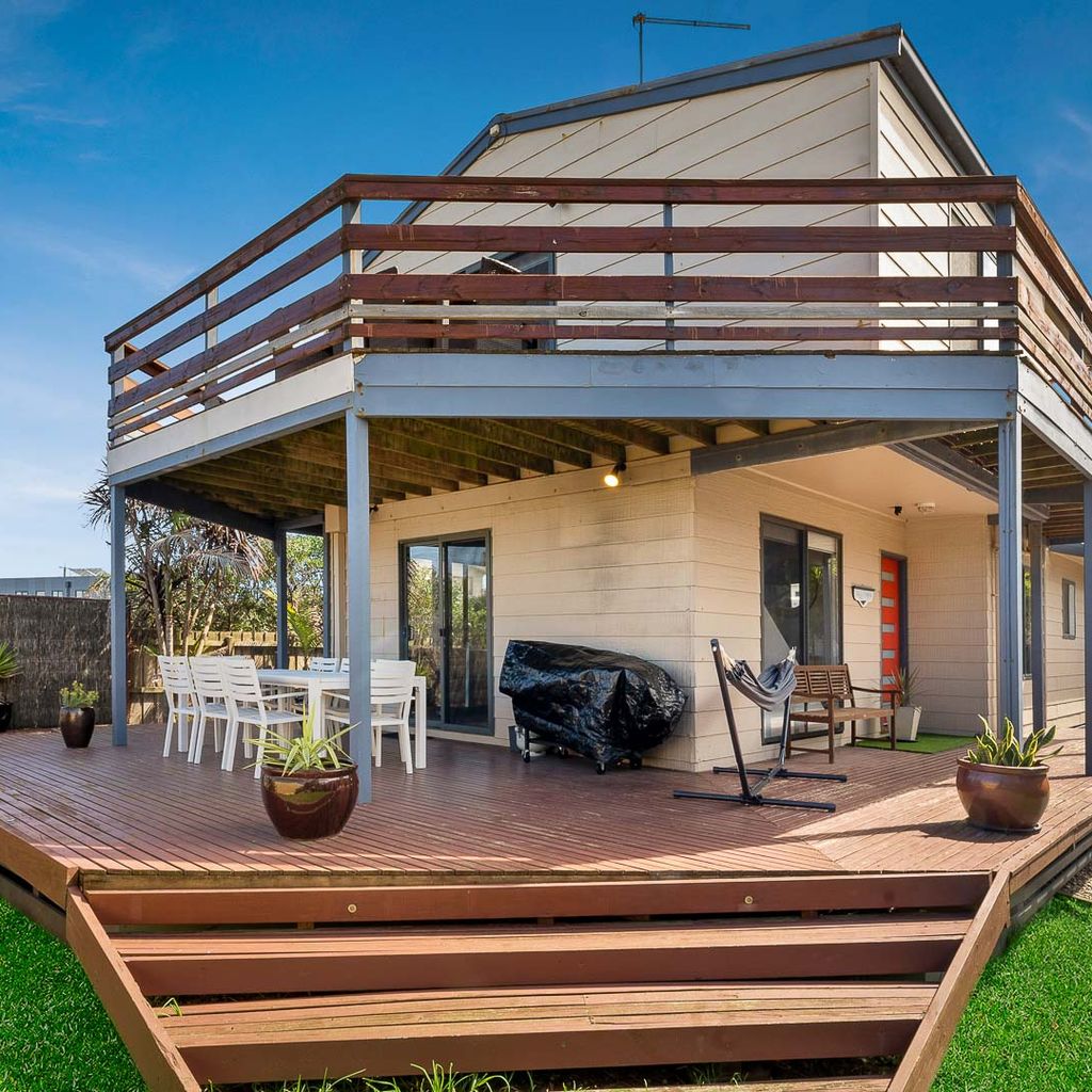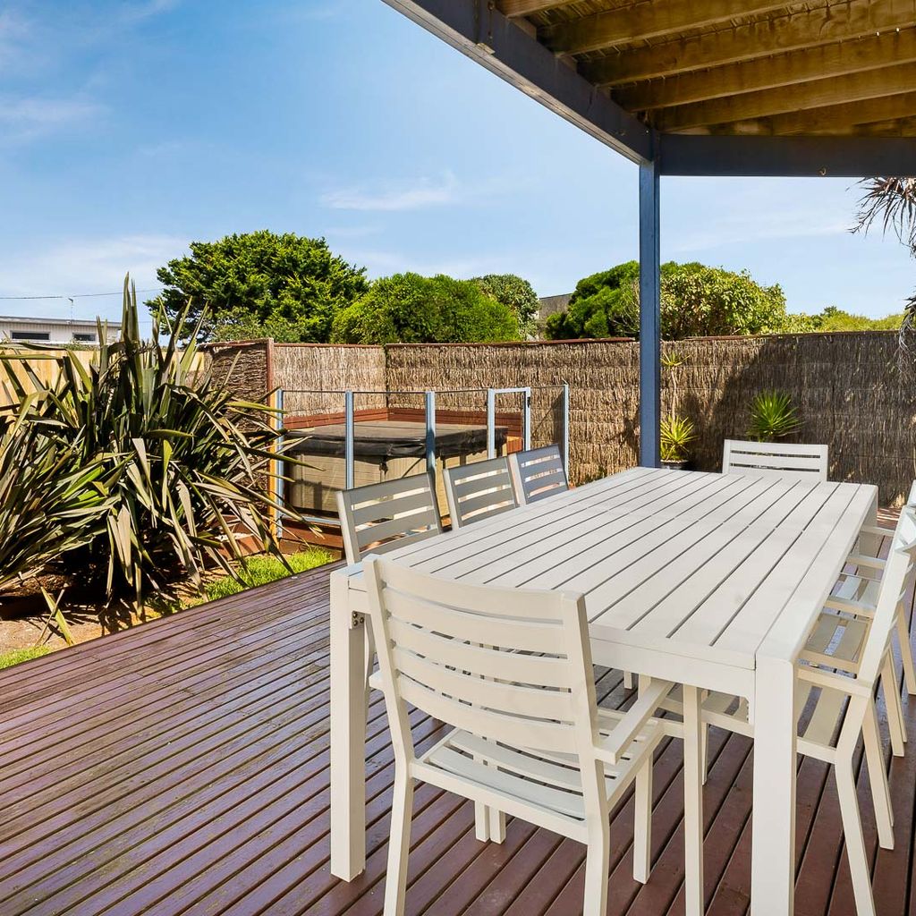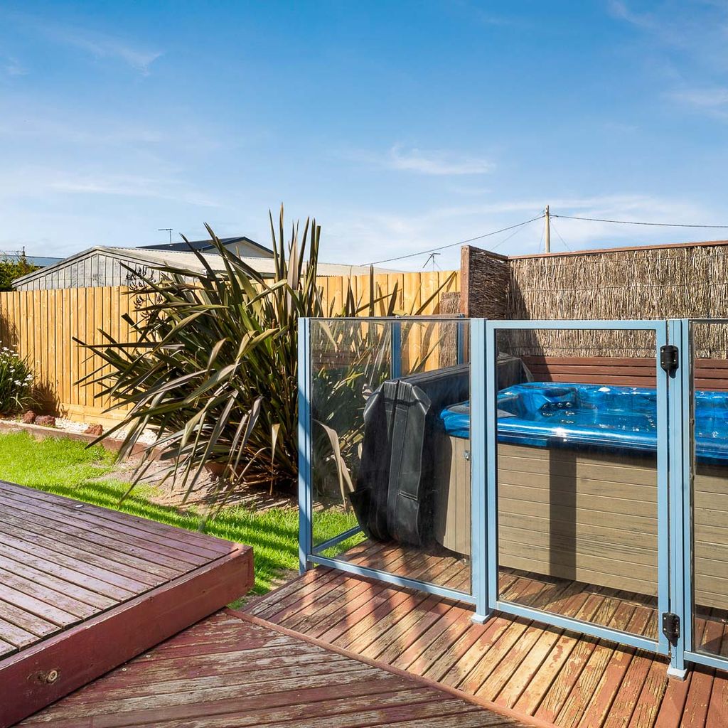 The lovely upstairs balcony with seating for up to 8 people provides water views over Sunderland Bay to Pyramid Rock, and there is a downstairs covered deck area (with BBQ and more seating for up to 8 people). The electric heated 6 person spa (with moderate jet functionality as of March 2024) and the fully enclosed rear yard, complete with a hammock, provides an amazing opportunity to relax in style.
