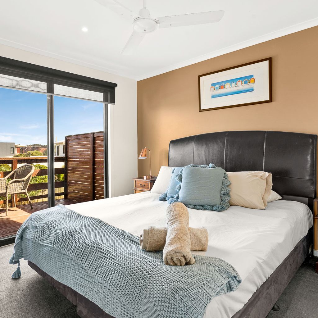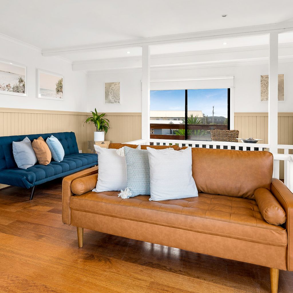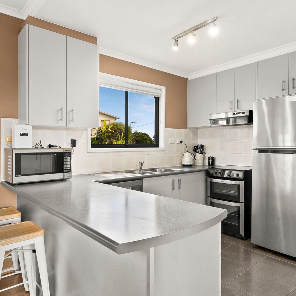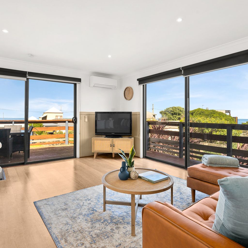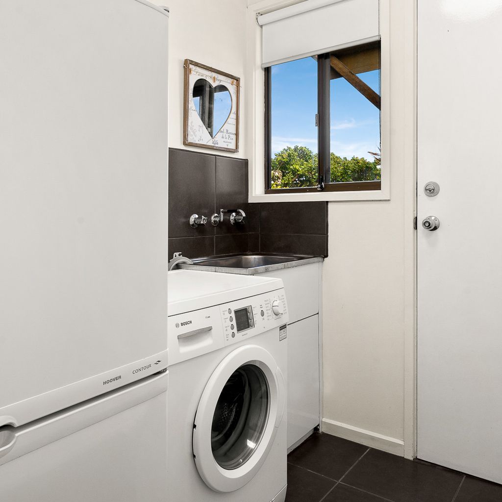 The lovely upstairs balcony with seating for up to 8 people provides water views over Sunderland Bay to Pyramid Rock, and there is a downstairs covered deck area (with BBQ and more seating for up to 8 people). The electric heated 6 person spa (with moderate jet functionality as of March 2024) and the fully enclosed rear yard, complete with a hammock, provides an amazing opportunity to relax in style.