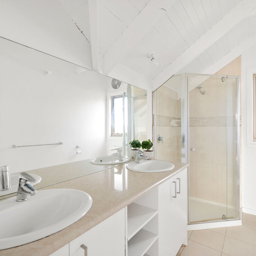 The enormous ground floor rear covered Deck (with gas BBQ and seating for 18 people) overlooks the fully enclosed rear yard, which is perfect for children. The side Deck (accessed off the Laundry) has an outdoor shower, and there is a covered upstairs Balcony (with seating for 2). There is parking for 2 cars in the Double Carport (with covered entry to the home) plus space for 2 more vehicles (cars and/or a boat) in the driveway. There is also street parking at the end of the street for any excess vehicles.