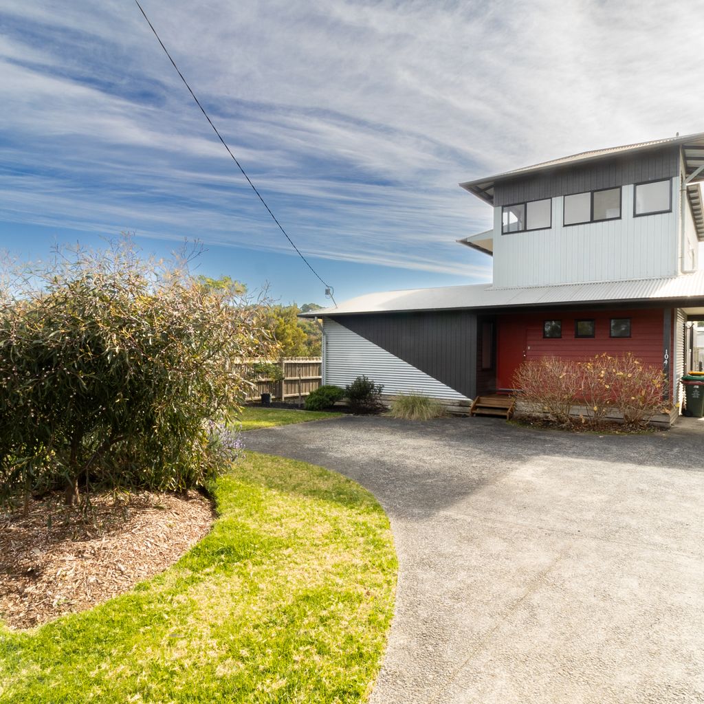 Relax on the large upstairs covered deck (with gas BBQ and table & chairs for 6) which overlooks a delightful reserve next door, often visited by wildlife (including wallabies). The downstairs covered Patio steps out into the large fully enclosed rear yard (with outdoor shower) which is perfect for children and features a height adjustable basketball ring. The single carport and long driveway are suitable for up to 3 vehicles (cars and/or a boat).