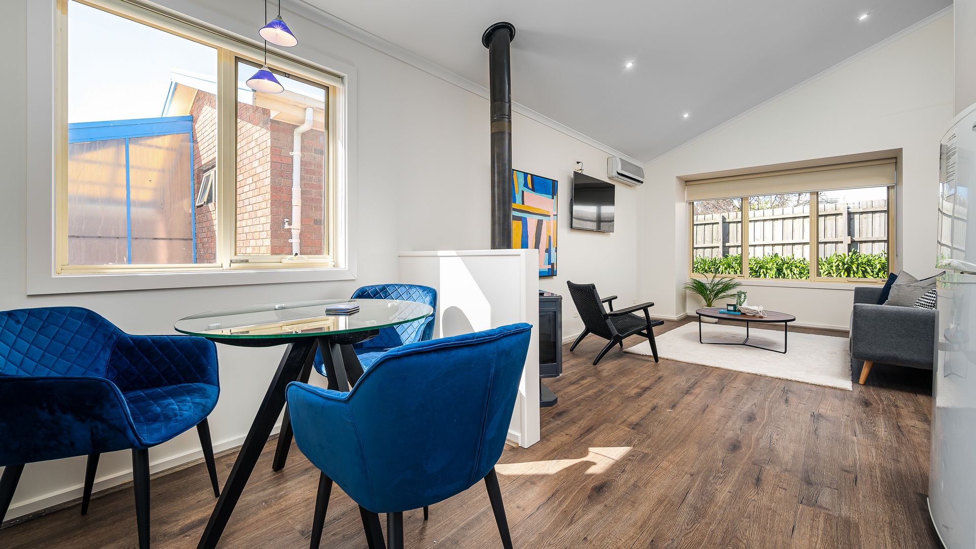 The Villa has a wall mounted reverse cycle (heating & cooling) air-conditioning unit in the living room, There is an electric blanket on the Queen bed. PLEASE NOTE - the fireplace is not available for use.
