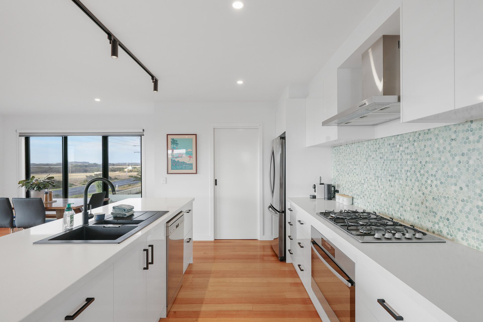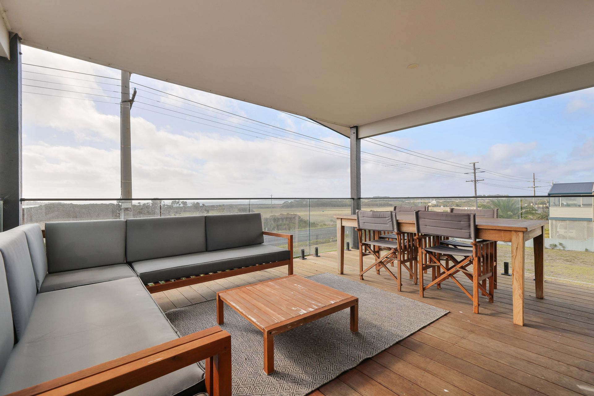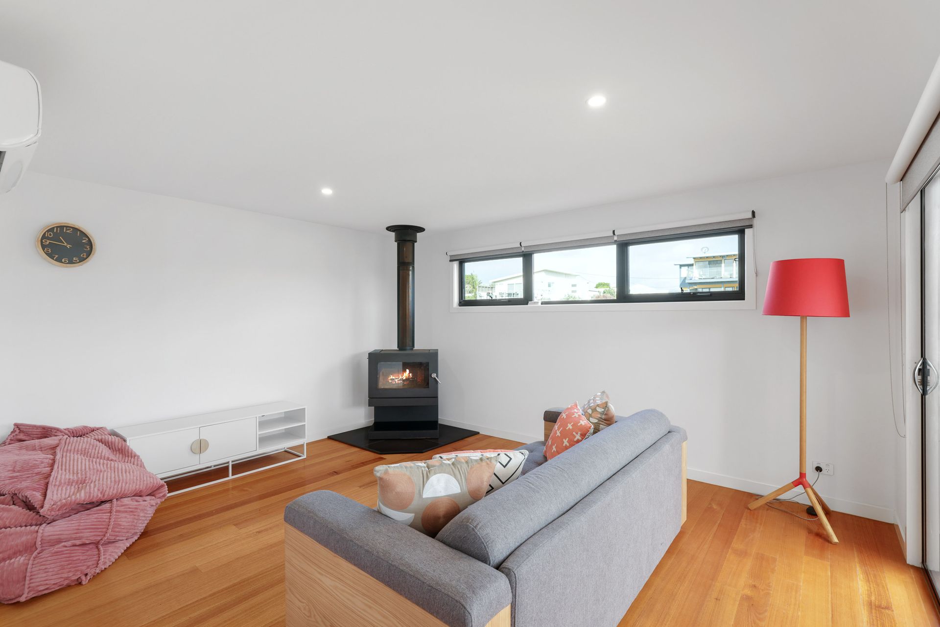 The rear fully covered Deck (with gas BBQ, bar fridge & seating for 6) overlooks the enclosed rear yard (perfect for children and pets alike) which features a wood fired Pizza oven, a spring-free trampoline with basketball ring and a hot/cold outdoor shower. Enjoy the delightful Bay and rural views from the upstairs covered Balcony (with 6-seater table & outdoor couch). There is direct access into the home from the double Garage (with table tennis table and couch). There is space to park 4 - 5 vehicles (cars and/or a boat) in the driveway.