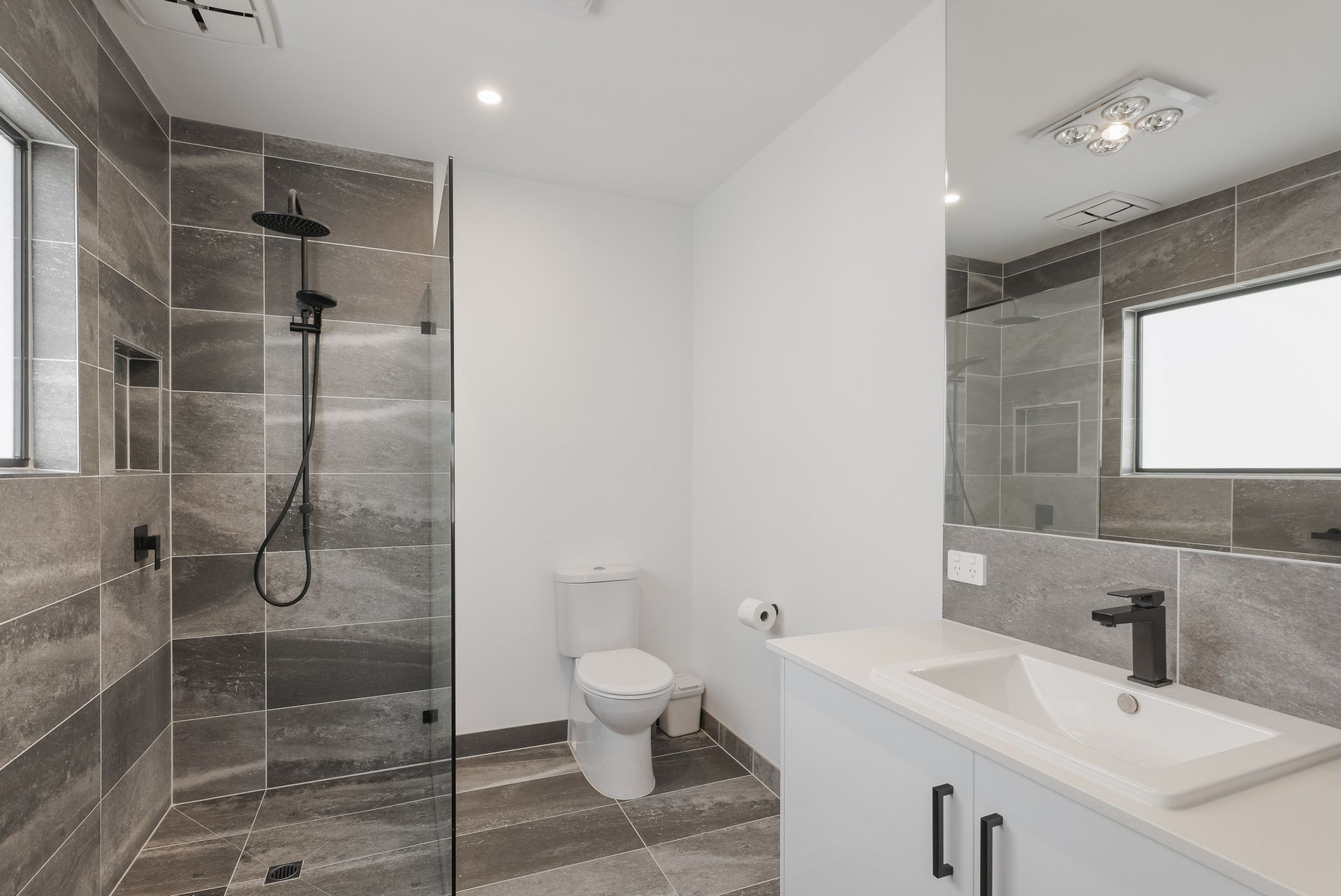 Upstairs is the large open plan Kitchen/Dining/Family Room (with 55" smart TV) that provides access to the covered Balcony. Also on this level is the main Bedroom which features a WIR and ensuite (with shower & toilet) plus a separate Toilet.