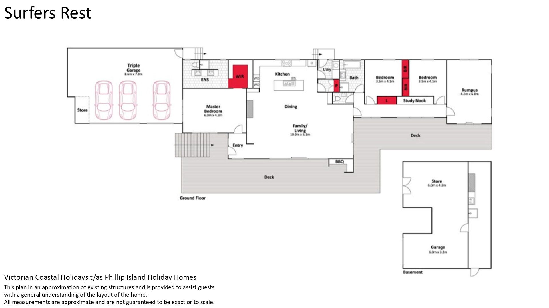 “Surfers Rest” is a delightful double-storey family [and pet-friendly XX] home in Surf Beach, just a short walk from the Beach and a comfortable drive from all the supermarkets, restaurants & cafés of Cowes and Cape Woolamai. Some of the many features of this lovely home are detailed below: