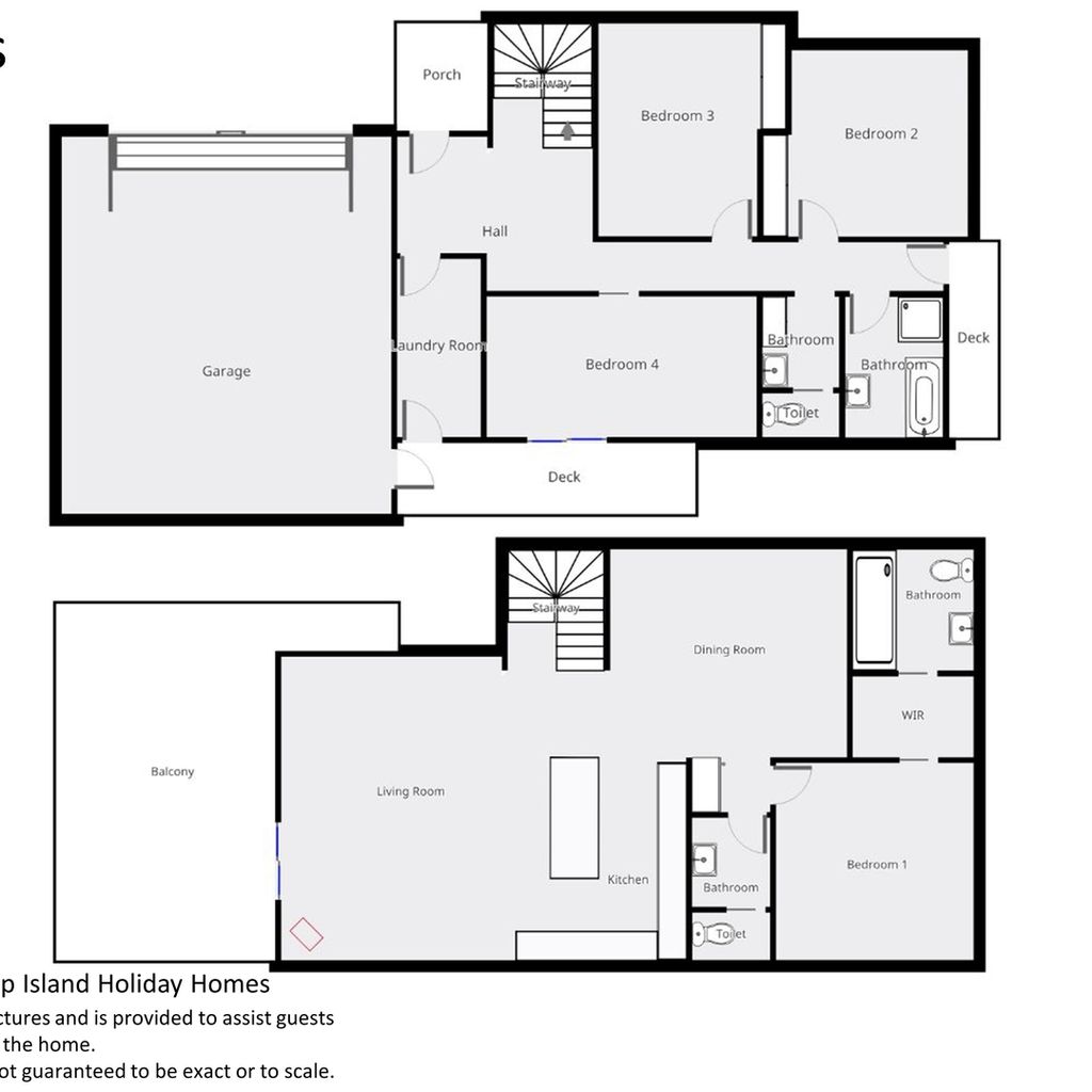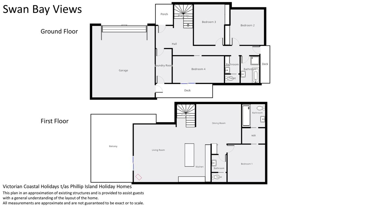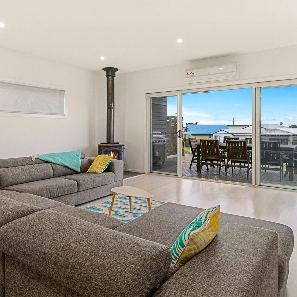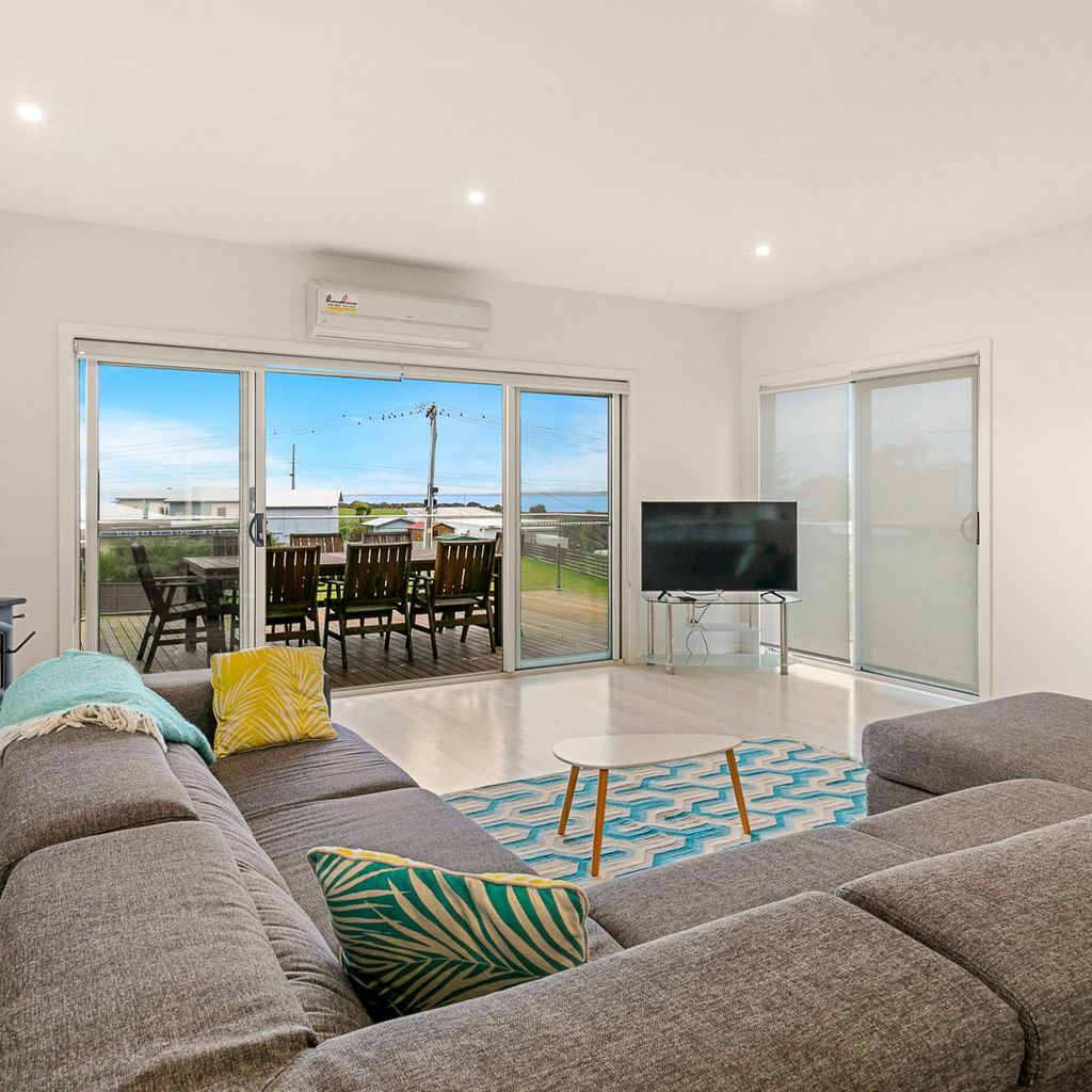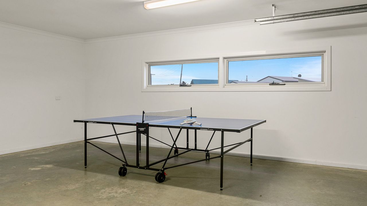 The 2nd floor front deck provides a lovely place for outdoor meals (BBQ provided) and views across to Swan Bay. Downstairs there is also a huge double garage with a table tennis table and direct pedestrian access into the rear of the property.Also featured are a rear courtyard with an outdoor hot & cold shower and another fully enclosed grass covered courtyard at the front of the home.