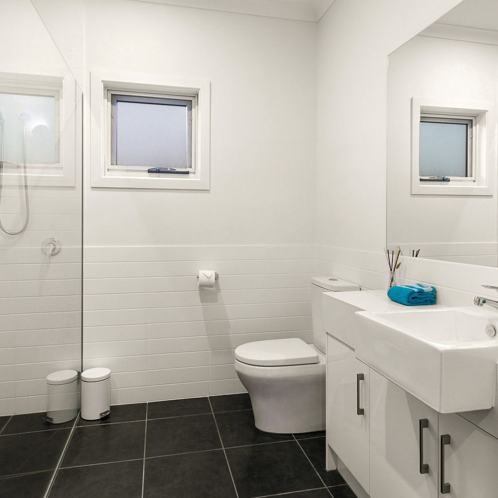 Upstairs, is the Master bedroom (with en suite) and a separate powder room. The large main living / dining area opens into the well appointed kitchen and front deck. Downstairs, there are three large bedrooms (two with BIR) and a family bathroom (with another separate toilet) and laundry.