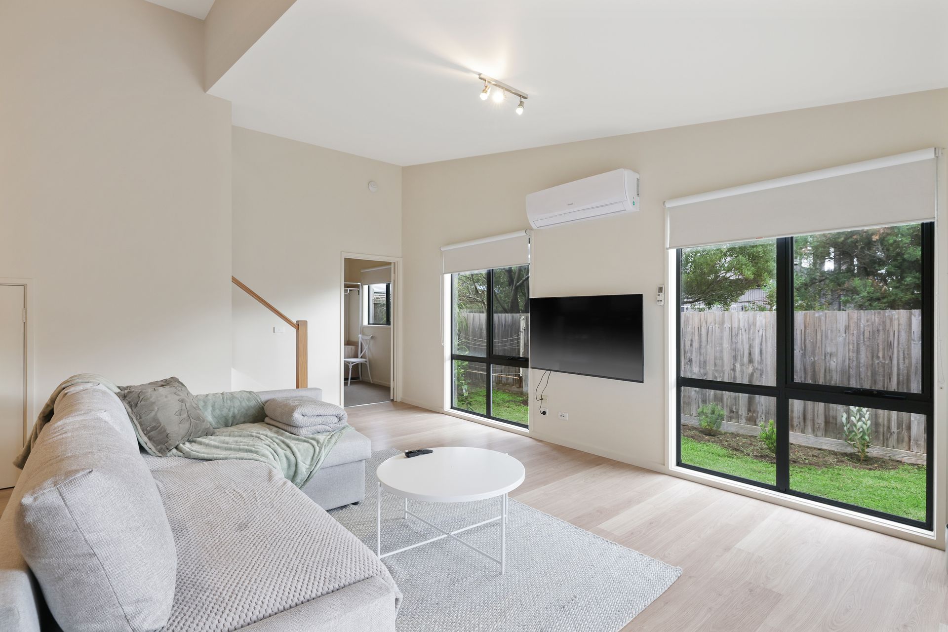 Downstairs is the Lounge (with 55" smart TV) that provides access to Bedroom 2 with BIR and an ensuite (with shower & toilet) and opens up into the large open plan Kitchen/Dining/Living Room. The rear Deck flows from the Living Room, which also provides access to Bedroom 3, a combined Bathroom/Laundry (with shower over bath and washing machine) and a separate Toilet. Upstairs is Bedroom 1 which features a BIR and ensuite (with shower & toilet).
