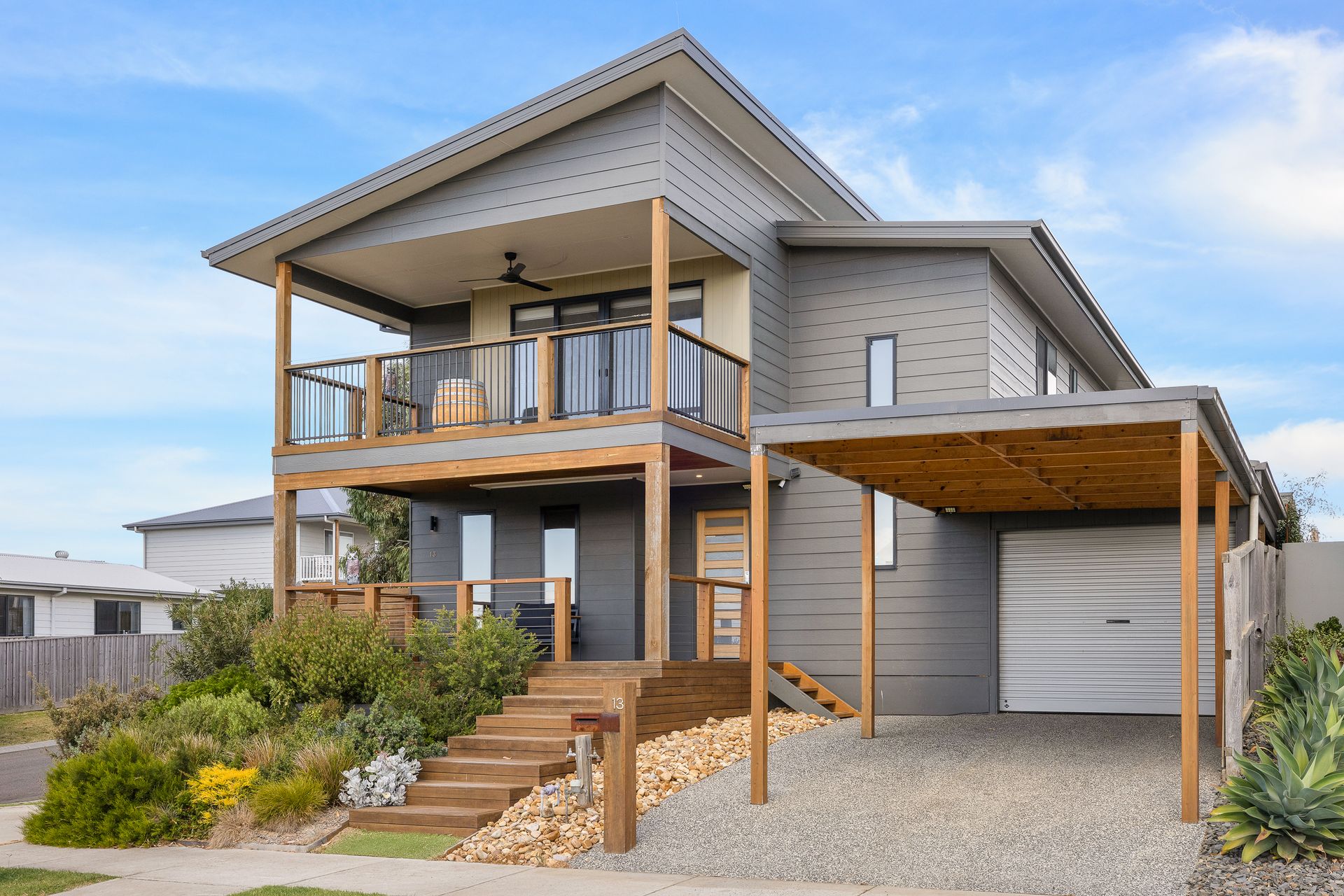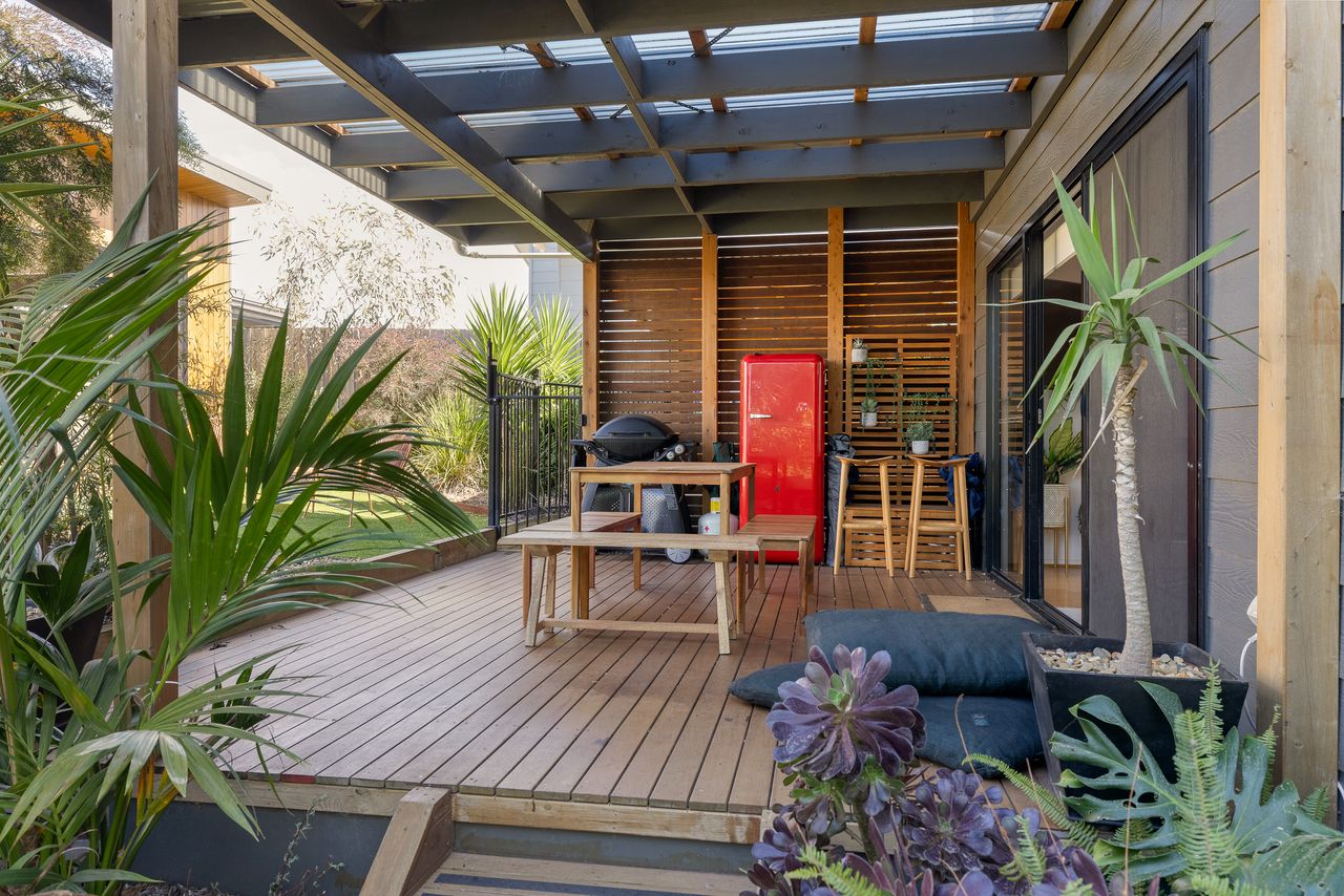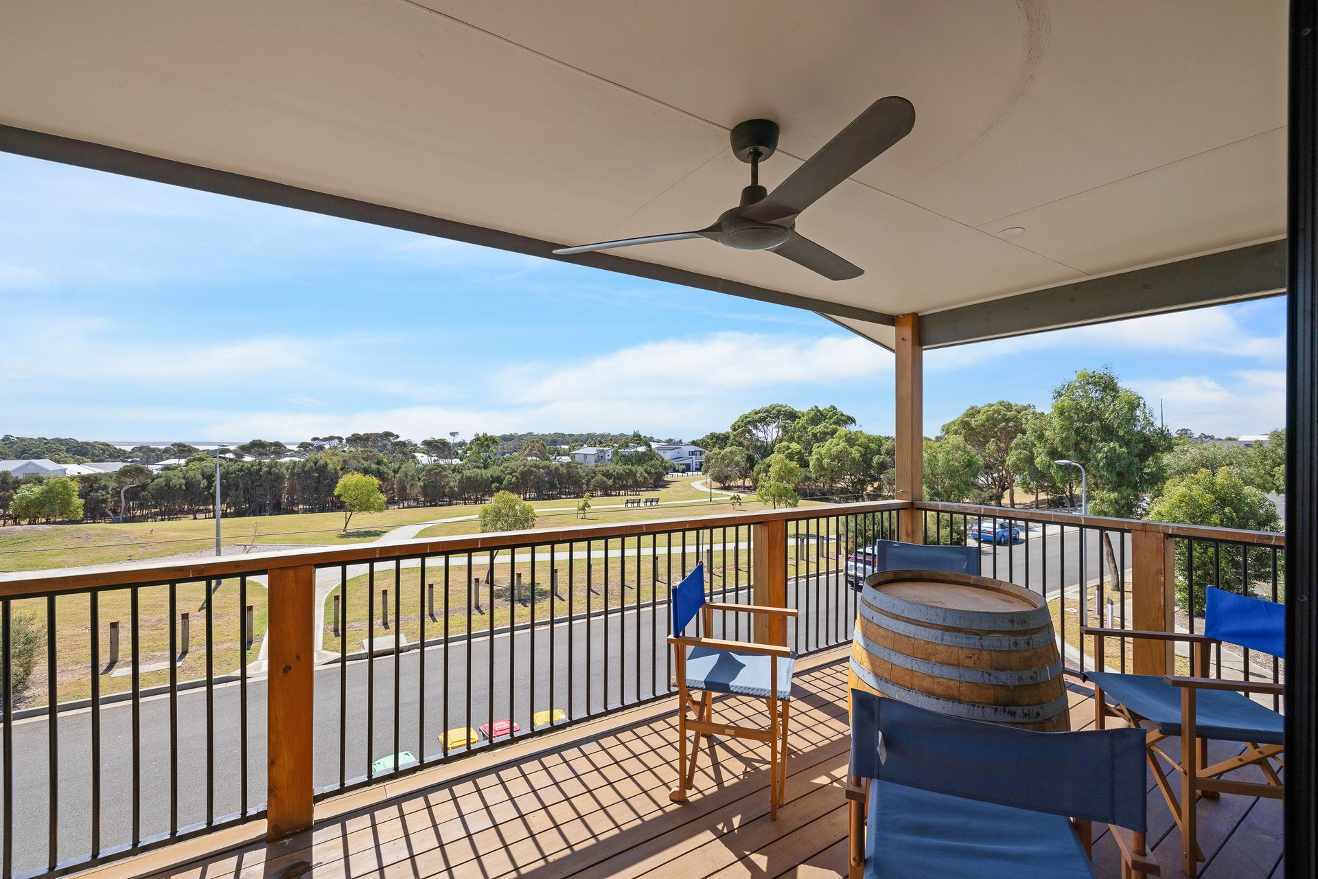 There is also a covered front Deck (with seating for 2 & a side table) and on the first floor is another covered deck (with 4 x directors chairs - stored inside) that provides lovely distant water views. A Carport which can fit one car (or jet ski/small boat or motorbikes), plus space for an additional vehicle in the driveway under a carport with an EV charger. Please note the garage is not accessible.