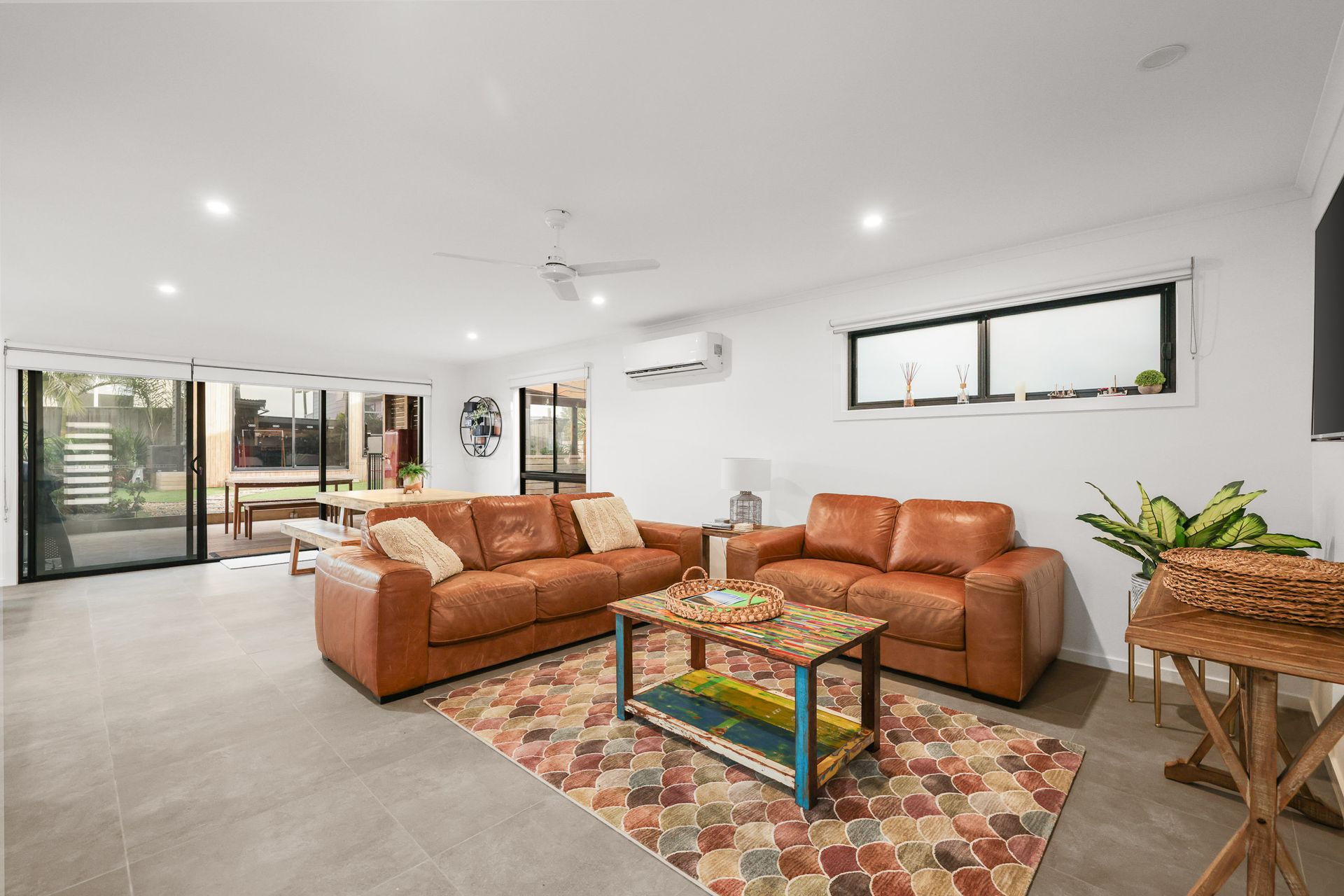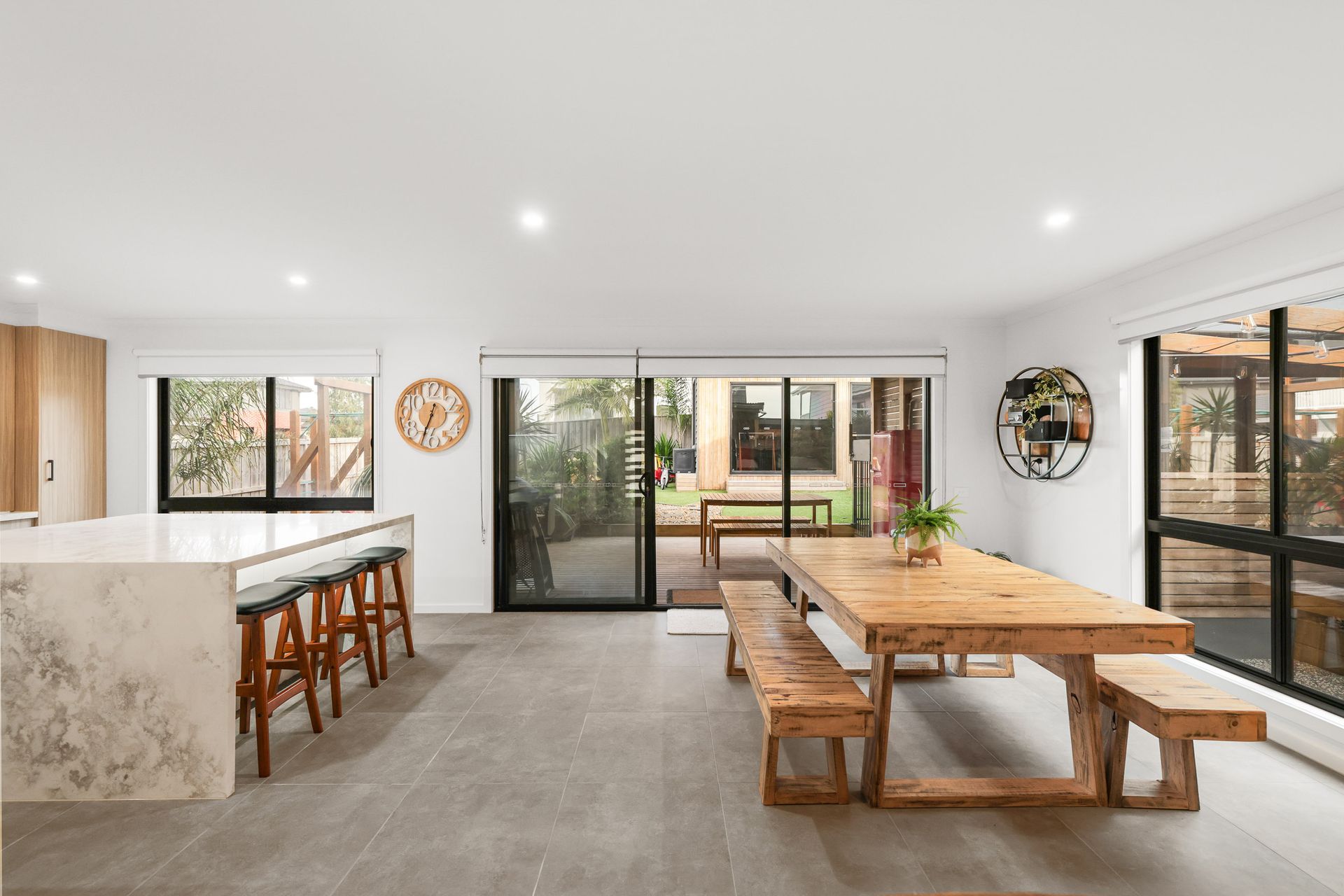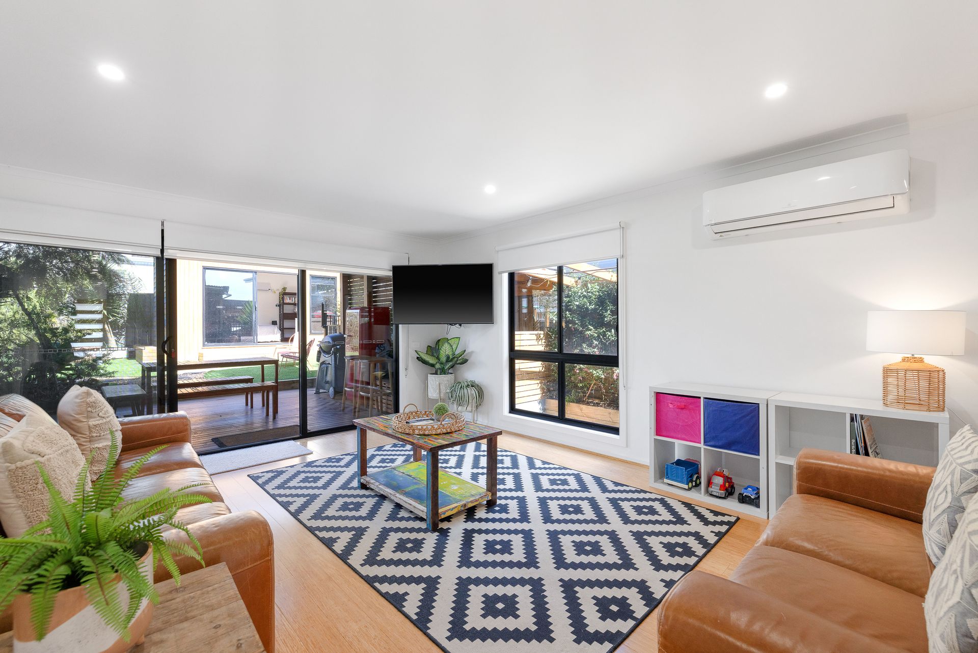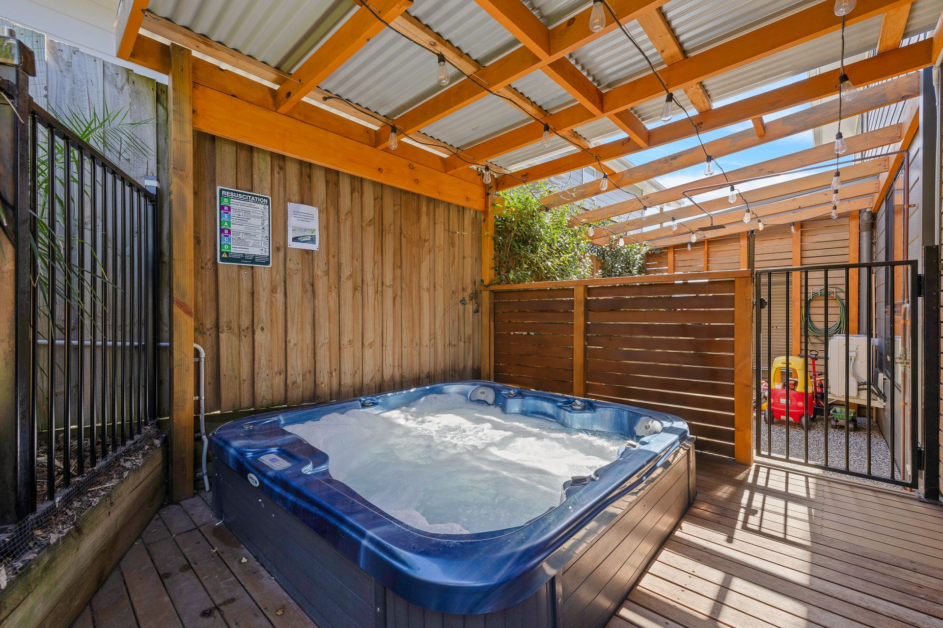 The covered rear Deck (with gas BBQ and table & chairs for 6 people plus an inside bench that can be brought outside) overlooks the fully enclosed rear yard which is perfect for children and pets alike and features some fantastic play equipment for children (with swing, monkey bars, and chin up bar. Please note, trampoline is no longer at the home). The centrepiece of the home is the adjacent, fully covered electric heated 5-seater spa that also overlooks the rear yard. Bedroom 5 is a Studio accessed via the rear yard. .