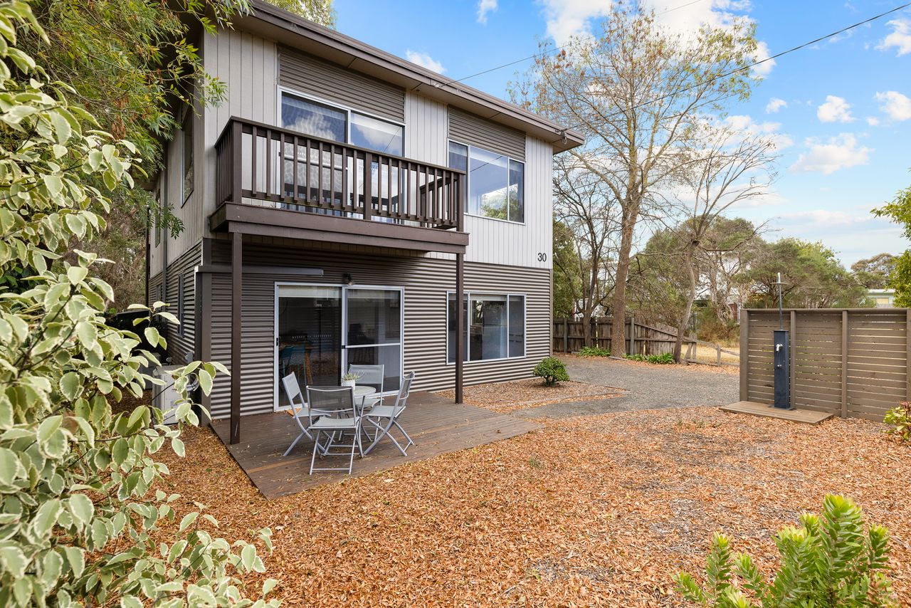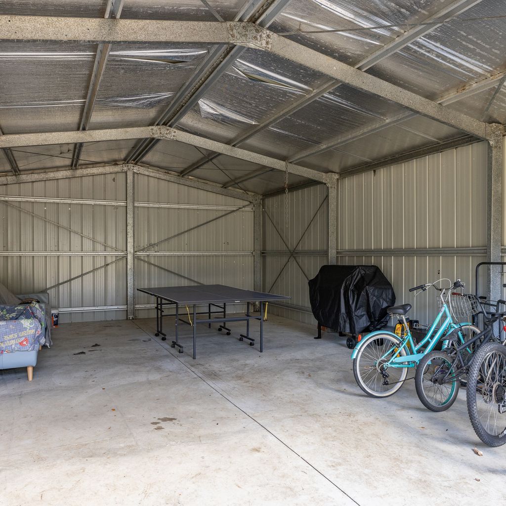 The rear covered Patio (with gas BBQ and table & chairs for 8 people) as well as the rear semi-covered upstairs Balcony (with seating for 4 people) overlook the enclosed rear yard which is perfect for children and pets. The large Garage (with table tennis table, couches and some bikes, skate boards & a scooter - no helmets) provides a great teenagers retreat. There is space to park 3 vehicles (cars and or a boat) in the long driveway. The front Patio (with table & chairs for 4 people) overlooks the front garden which has an outdoor shower, perfect for washing off after the beach.