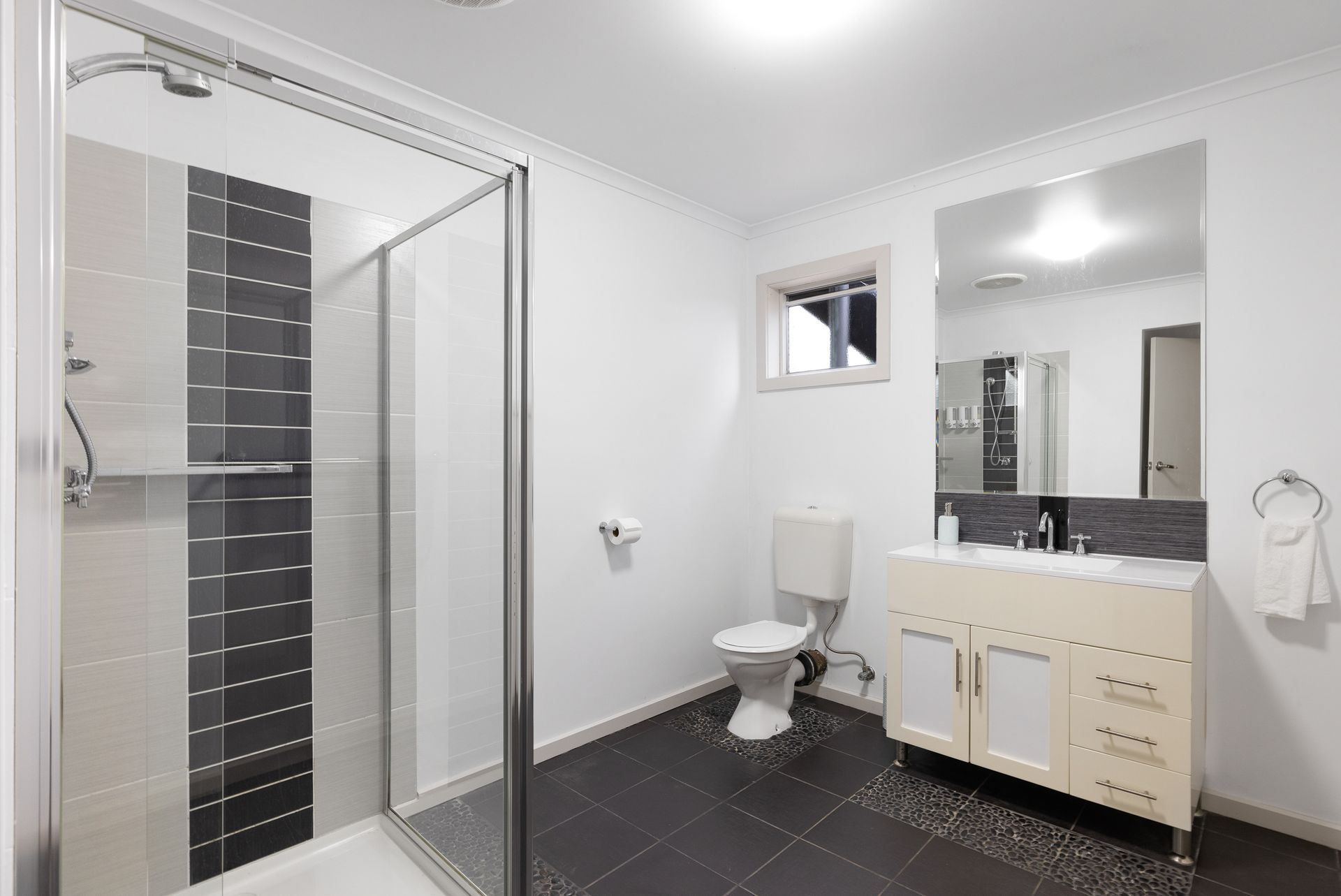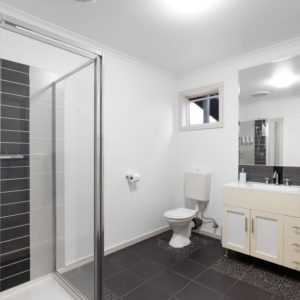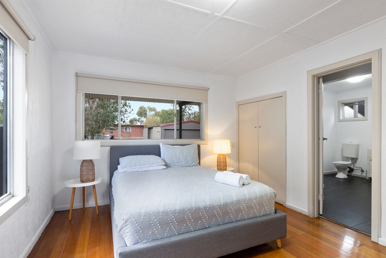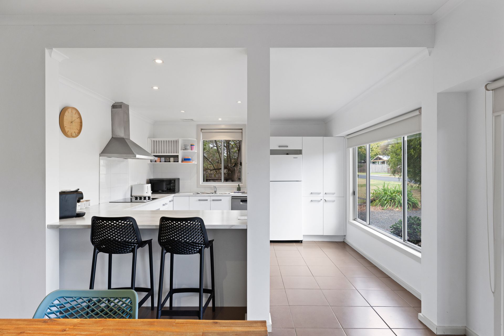 Downstairs is the open plan Kitchen/Dining room (with 43" smart TV) which leads to Bedroom 1 with BIR and an ensuite (with shower & toilet). The European Laundry (with washing machine) is up a few steps of the stairs that go to the first floor. Upstairs is the large Living Room (with 50" smart TV & Coonara wood heater) that leads to Bedrooms 2 and 3, a Bathroom (with shower & toilet) and provides access to the rear Balcony.