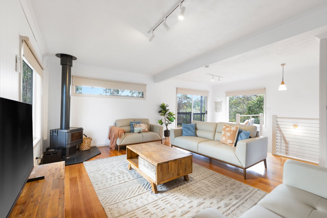 There are two wall mounted reverse cycle air conditioners; one in the downstairs Dining Room and one in the upstairs Living room, plus three additional stand-alone heaters and three fans which can be used where required. There is a Coonara wood heater in the upstairs Living room (no wood provided).