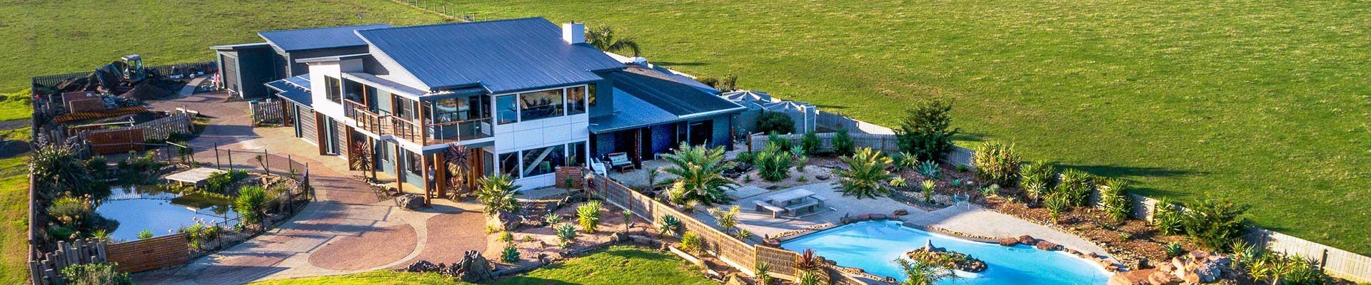 This rural setting provides great options for families and large groups. The large enclosed grassed area at the front of the property is perfect for watching native wildlife and birds, or having a game of cricket and is next to the solar-heated lagoon style pool, as well as the 8-seater electric-heated spa. There is also a sheltered rear BBQ area with an 8 seater outdoor setting. There is parking for many cars, trailers and boats either in one of the two driveways or on the road in front of the home. There is a pond in front of the home that is not for swimming.