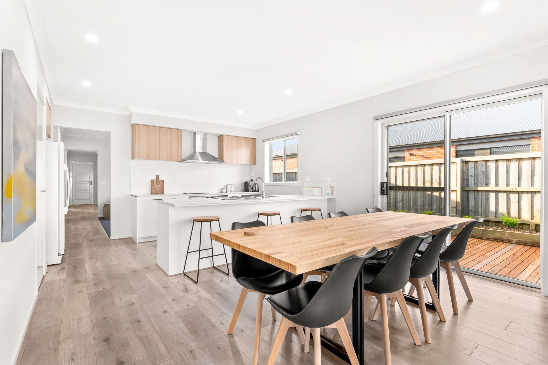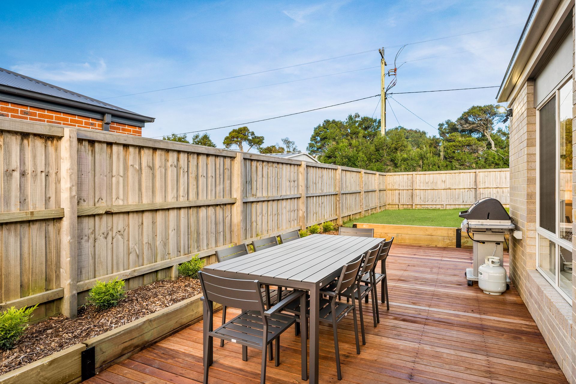 There is an outdoor table for 8 plus 2 seats with a coffee table overlooking the enclosed rear yard with a side gate (perfect for children or pets). There is space for 1 car to park in the garage (plus a bar fridge) and room for 1-2 more cars in the driveway.