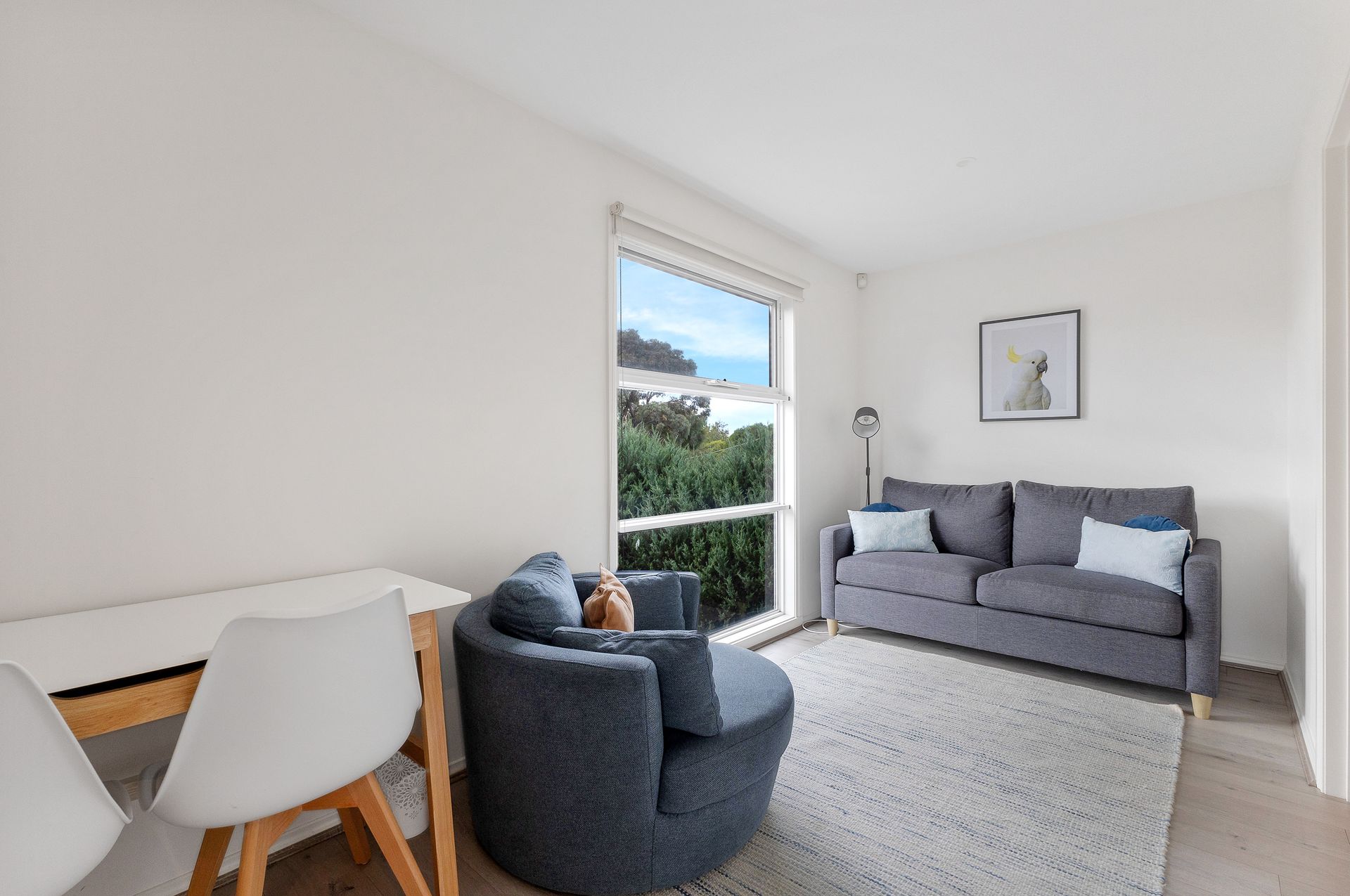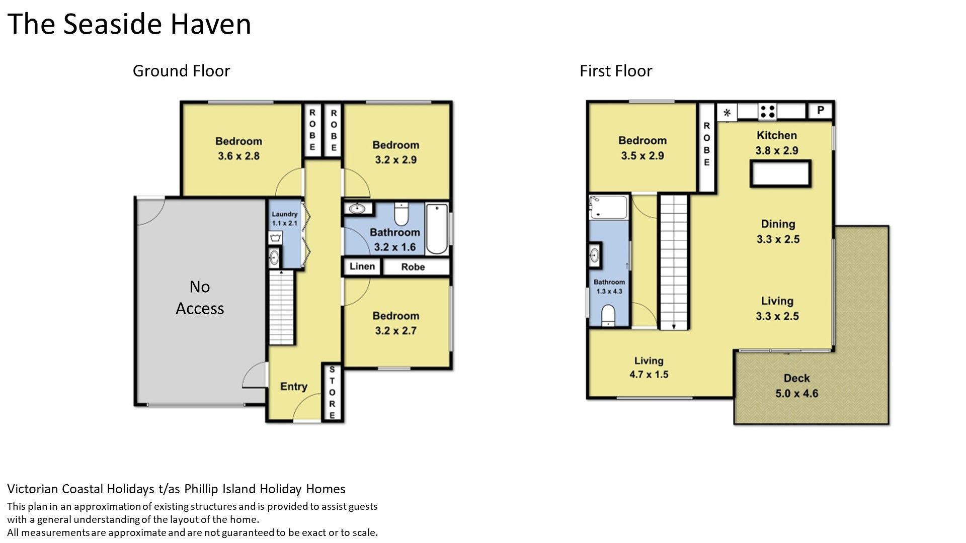 Downstairs, the central hallway provides access to Bedrooms 2, 3 & 4 (each with BIR, Bedroom 2 & 3 with smart TV's - no FTA channels), a Bathroom (with shower over a bath & toilet) and a fully equipped European Laundry (with washing machine and clothes dryer). Upstairs is the open plan Kitchen/Dining Living Room (with smart TV & portable soundbar) that flows out to the first floor Deck, and an adjoining second Living Room/Landing at the top of the stairs with a desk & chair. A short hallway leads to the second Bathroom (with shower & toilet) and Bedroom 1.