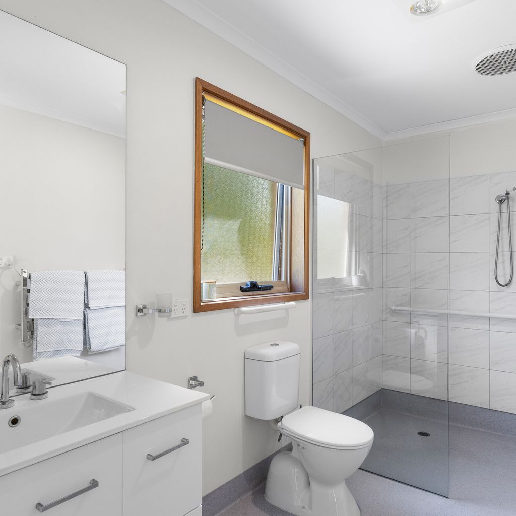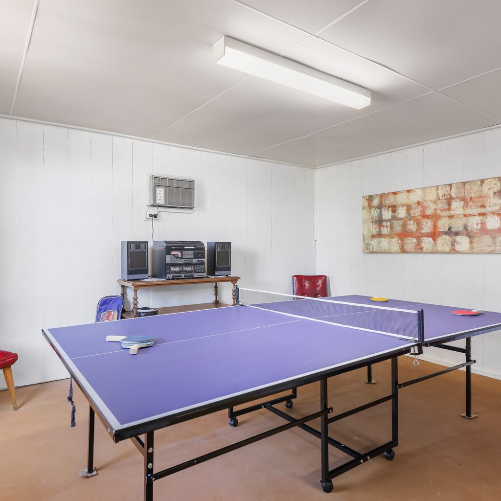 The open plan Dining/Family/Kitchen (with 50" smart TV) flows into a separate formal Lounge. A central hallway leads to Bedroom 1 at the end of the hallway with a chest of drawers & clothes rack, wall mounted 32" TV and access to the dual entry ensuite (with walk-in shower, toilet with grab bars & heated towel rail), Bedroom 2 features BIR and access to the dual-entry ensuite, and Bedroom 3 which has BIR. There is also a separate Bathroom (with shower over bath & toilet) plus a fully equipped Laundry (with washing machine) and a clothes dryer (located in the Games Room).