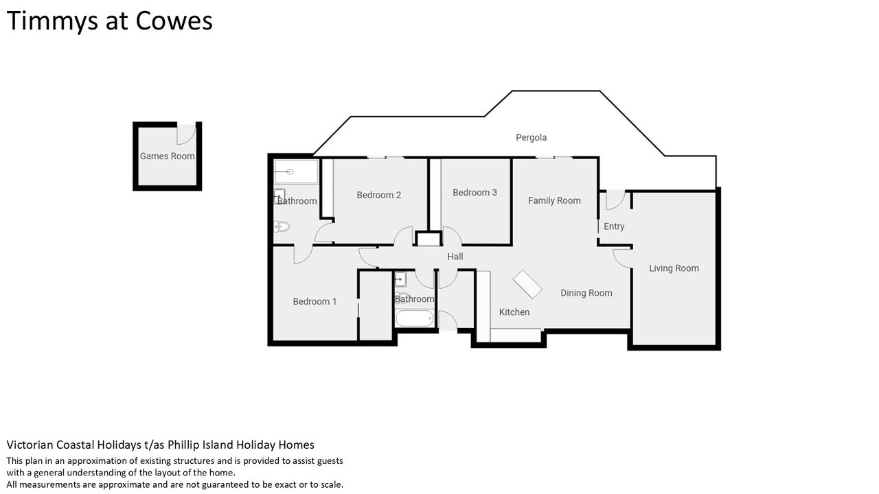 “Timmys at Cowes” is a delightful older style family & pet friendly single-storey home in Cowes just a short drive or comfortable walk from the supermarkets, restaurants & cafés of Cowes, and a 5 minute walk to the pet friendly beach. Some of the many features of this lovely home are detailed below: