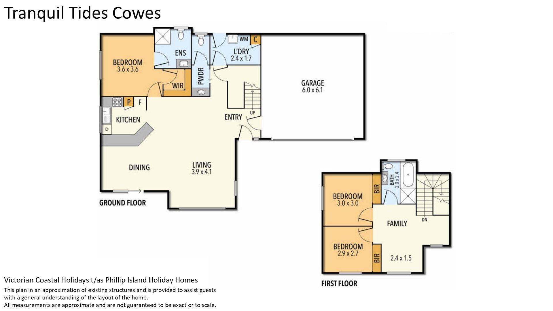The light-filled open plan Kitchen/Dining/Living area (with XXX smart TV, a selection of card & board games/books & DVD players) flows seamlessly from the entry, creating a comfortable and functional space for relaxing or entertaining. Also located on the ground floor is Bedroom 1 (with WIR), which features a private Ensuite (with shower & toilet). A central hallway includes a powder room (with a separate toilet) and a fully equipped Laundry (with a washing machine & clothes dryer) is provided, with both internal access and external access direct to the outdoor clothesline.