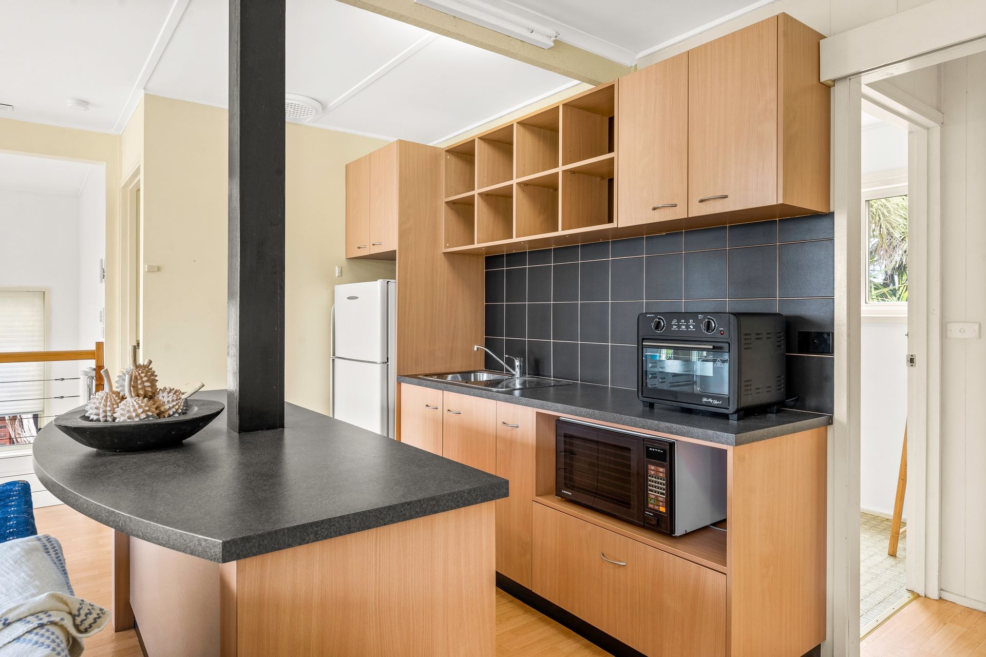 The fully appointed downstairs kitchen is equipped with cooking utensils, crockery, cutlery, microwave, Nespresso pod coffee machine, toaster, kettle, etc. plus a double sink, fridge, dishwasher, electric oven and cook top. The upstairs kitchen has a double sink, full sized fridge and a 23L portable convection oven.