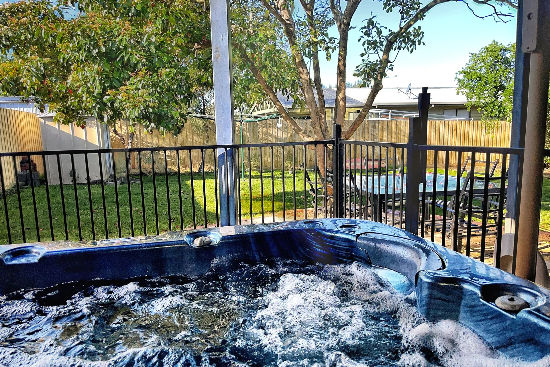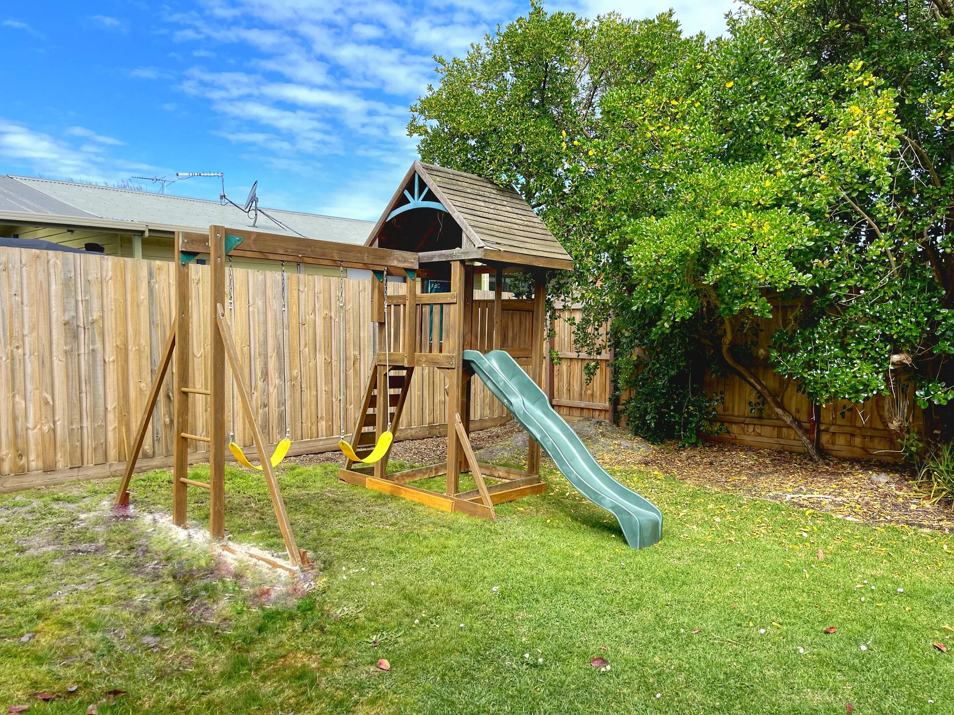 The fully enclosed rear and side yard is perfect for children and pets and features a childrens cubby house with swings and a slide. The downstairs partially covered patio has a newly installed electric heated 6-seater spa, table & seating for 8 and a gas bbq, the upstairs partially covered balcony also has table & seating for 8 with delightful garden views. The driveway provides space for 2 vehicles (cars and/or a boat). Additional parking is available beyond the gate, but please do not park on the grass.